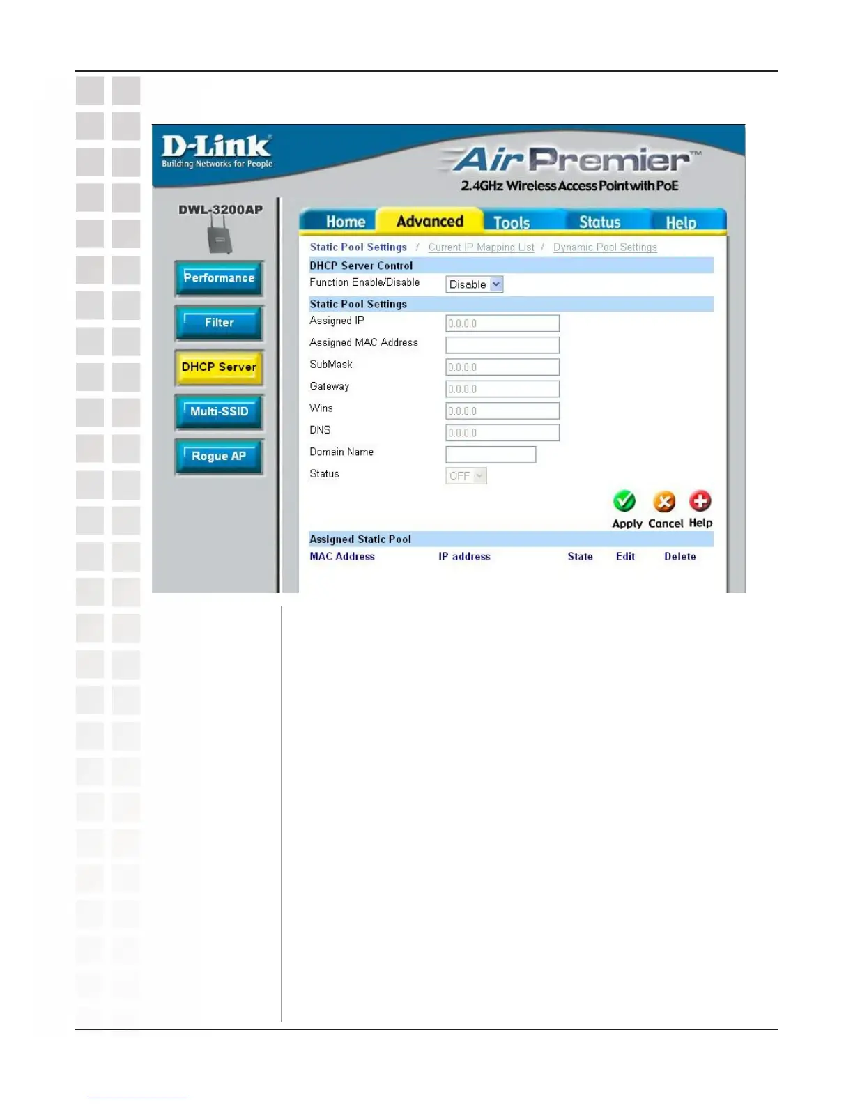 Select Enable to allow the DWL-3200AP to function as a DHCP
