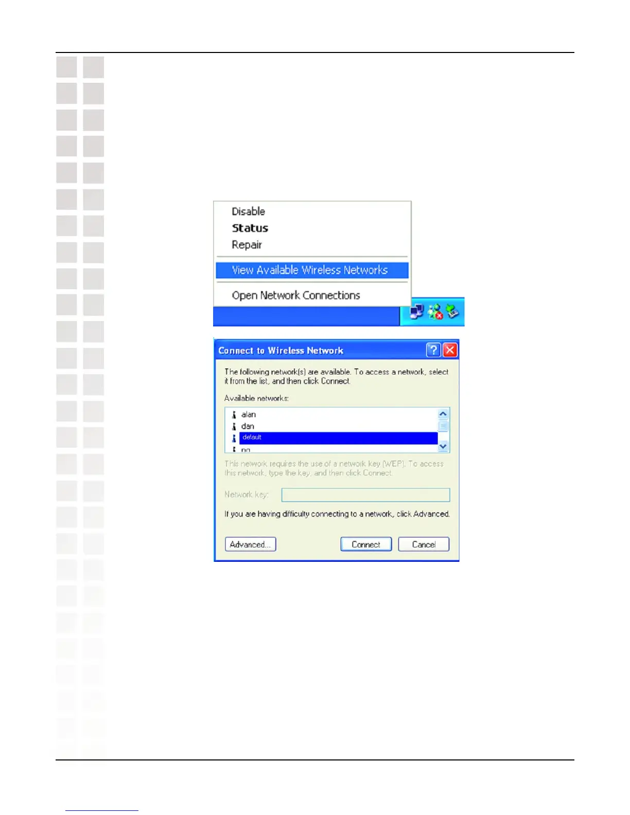 select View Available Wireless Networks. The Connect to Wireless Network screen