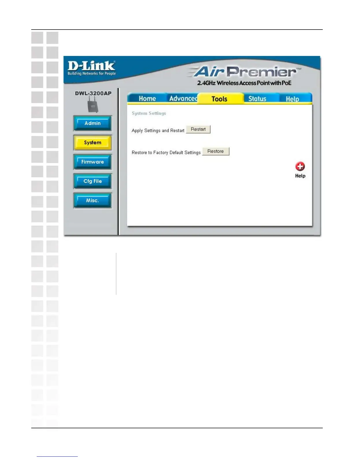 Click Restore to return the DWL-3200AP to its factory default settings.