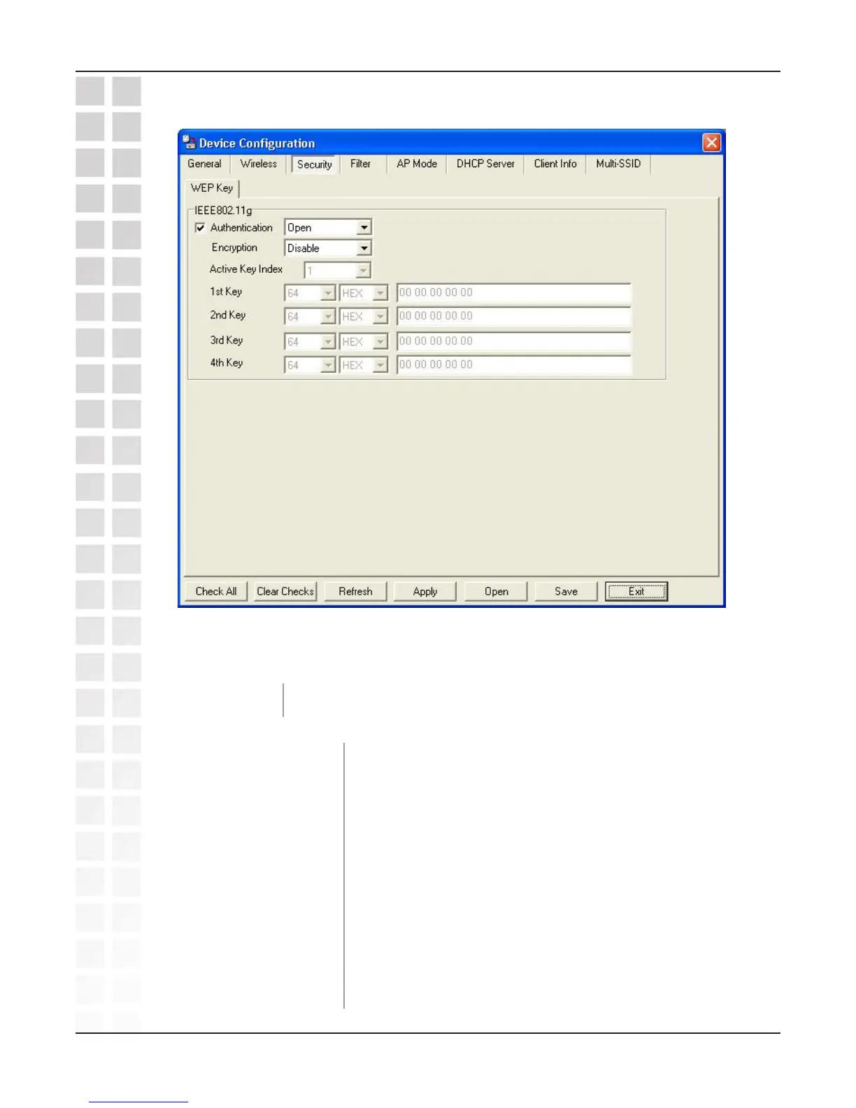 The Security tab contains the WEP configuration settings on the intial page. If you select
