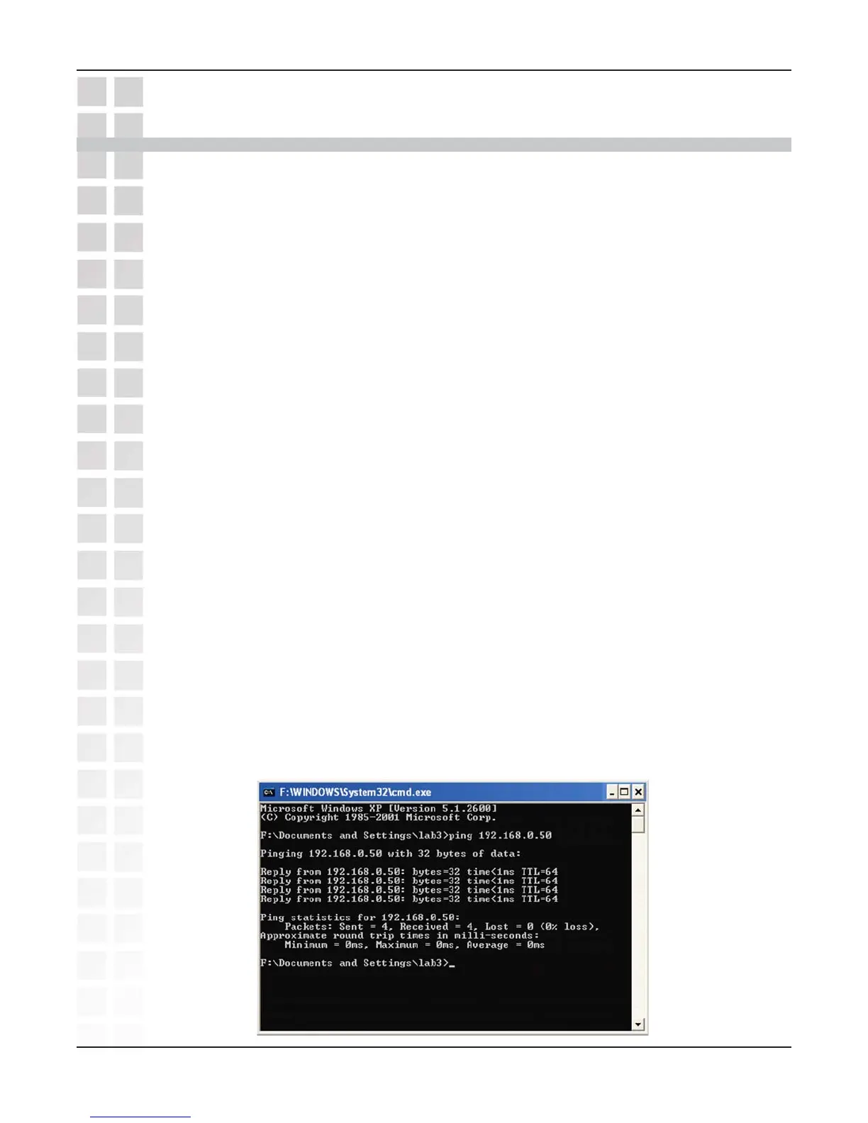 Start>Run>Type Command>Type ping 192.168.0.50. A successful ping will show