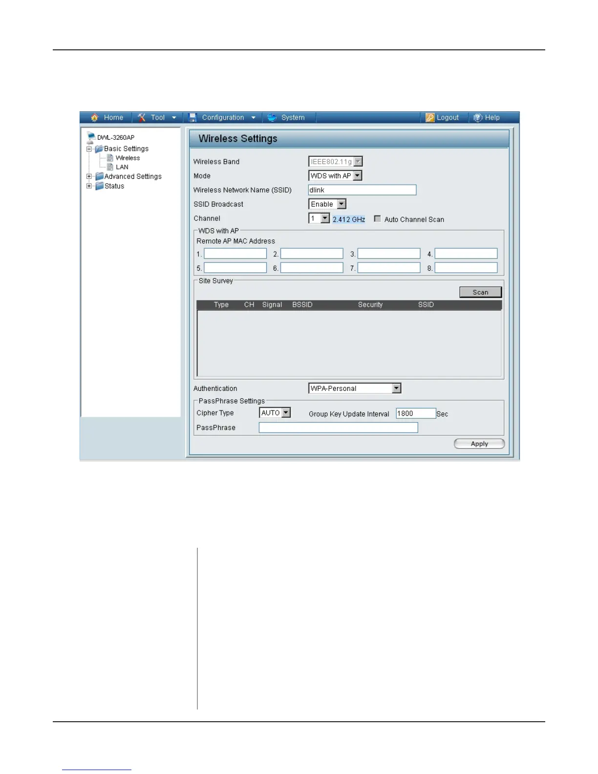 Home > Basic Settings > Wireless > WDS with AP mode
