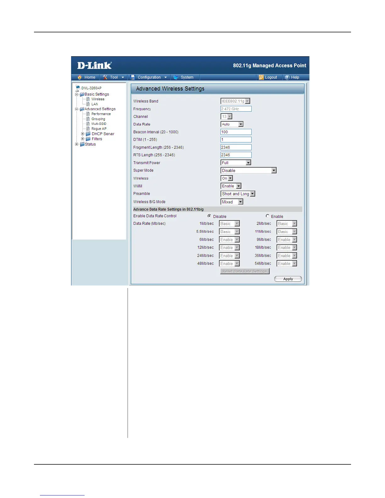 The Data Rates are Auto, 6Mbps, 9Mbps, 12Mbps, 18Mbps,