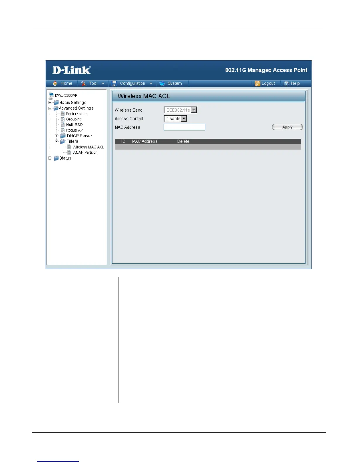Home > Advanced Settings >Filters > Wireless MAC ACL