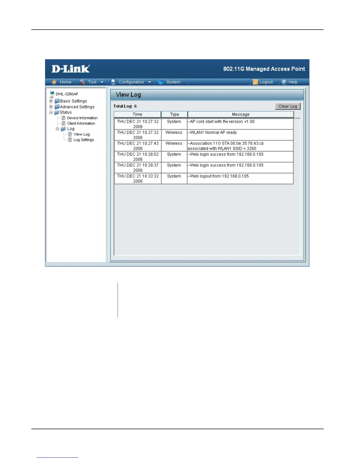 Home > Status > Log > View Log