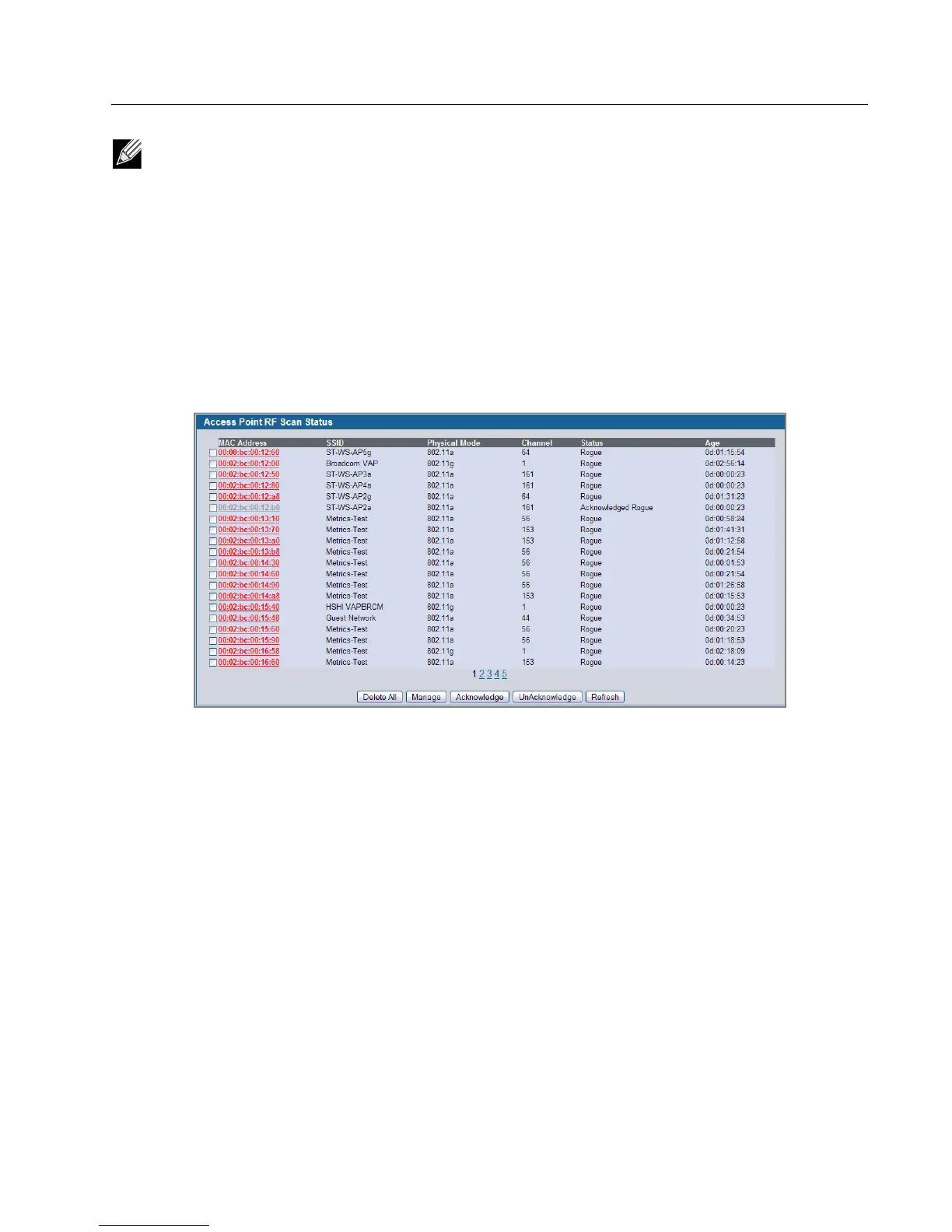 entry on the RF Scan Status page. However, the next time the switch discovers the AP, its entry in the RF Scan Status list