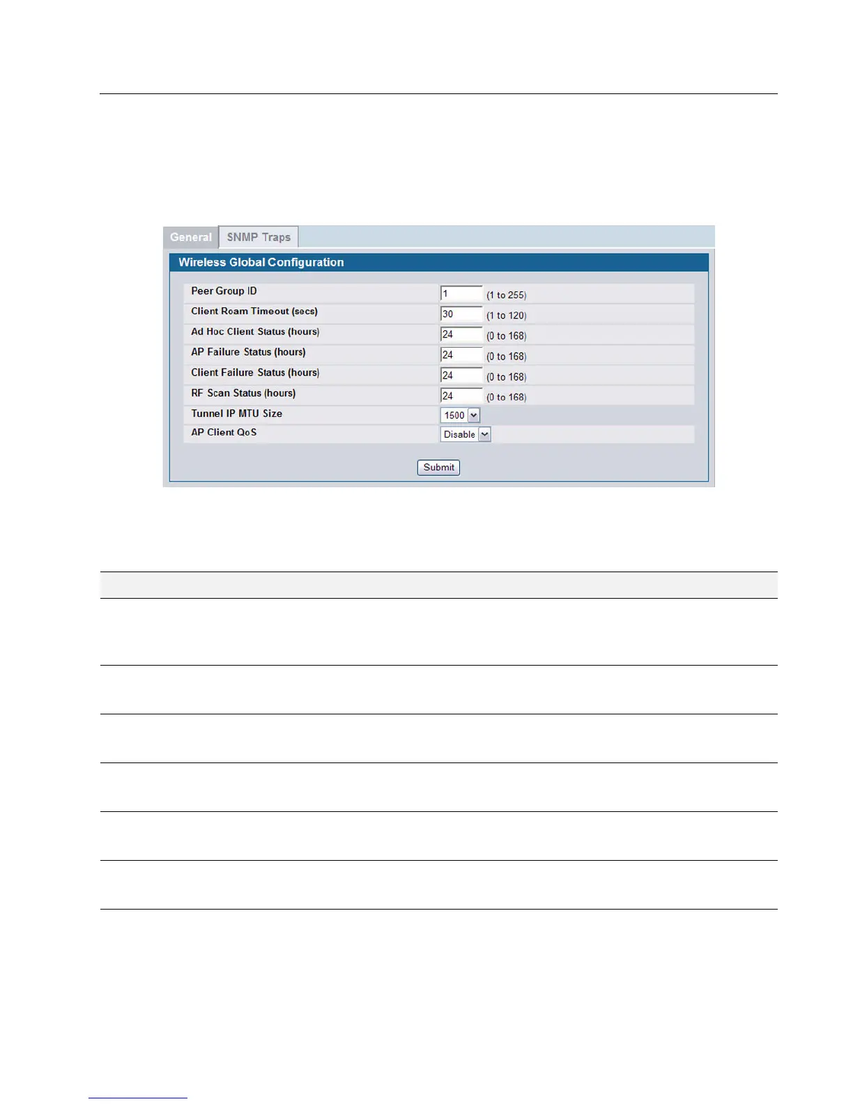 Table 58 describes the fields on the Wireless Global Configuration page.