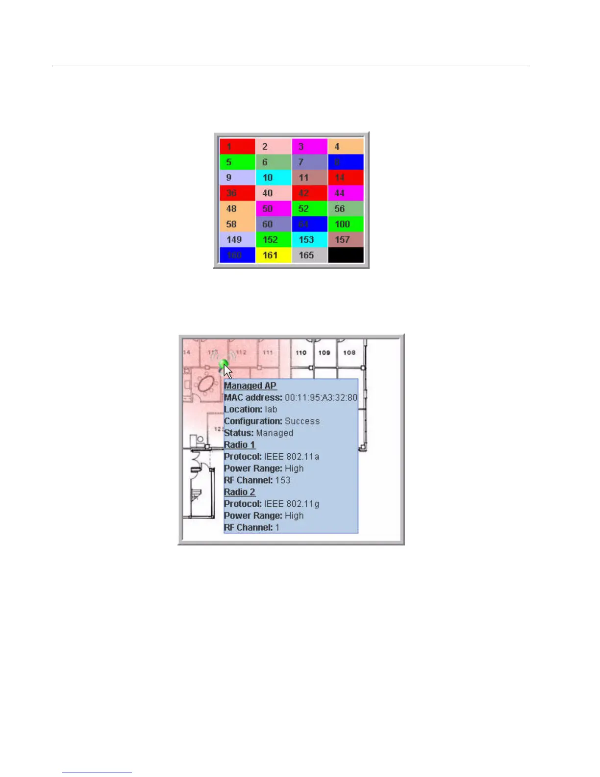 To view the channel that a radio is using, you can mouse-over the managed AP to activate the tool tip. The tool tip displays