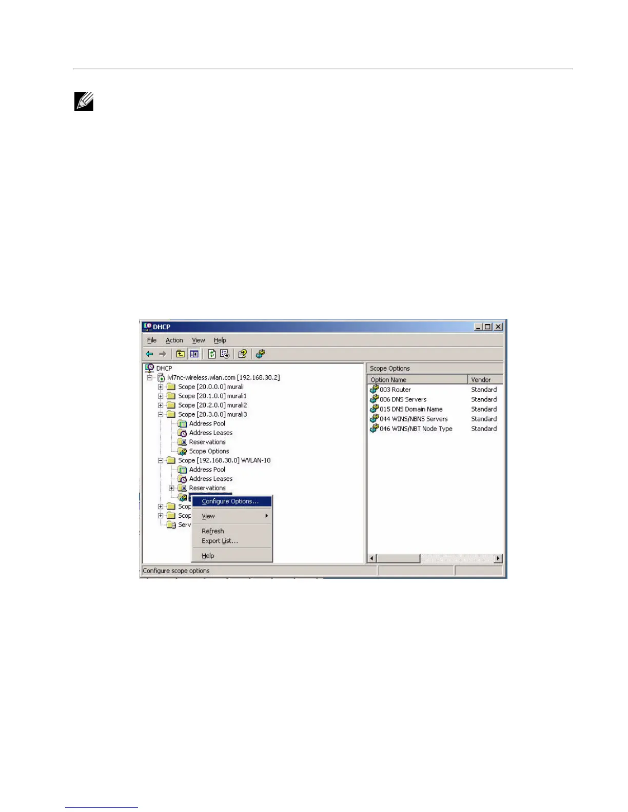 1 From the DHCP manager, right-click the applicable scope and select Configure Options...