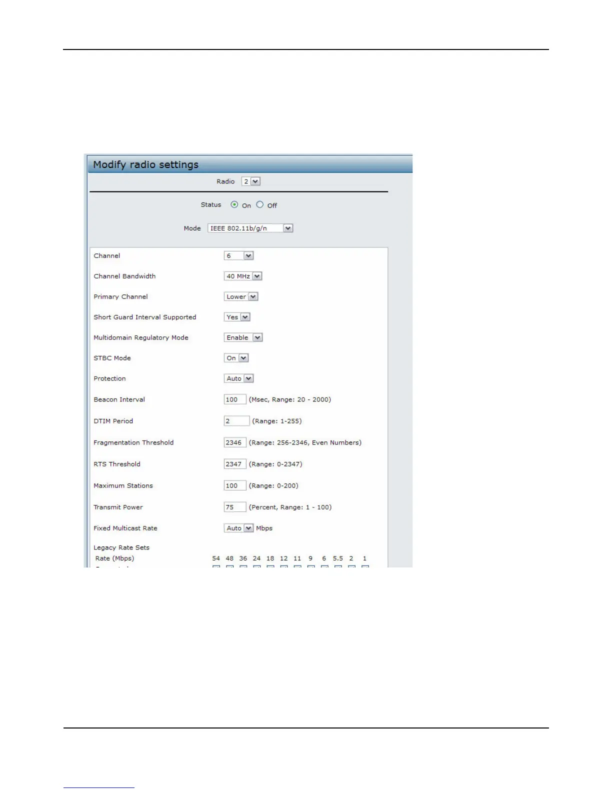 ThefollowingimageshowstheRadiopagewiththesettingsspecifiedinthis example.