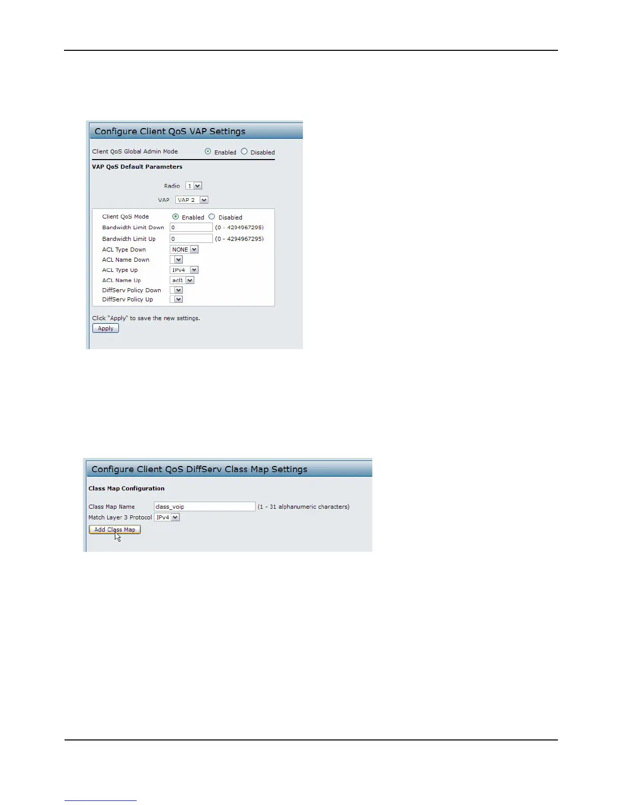 1. LogontotheAPandnavigatetotheClientQoS>ClassMappage.