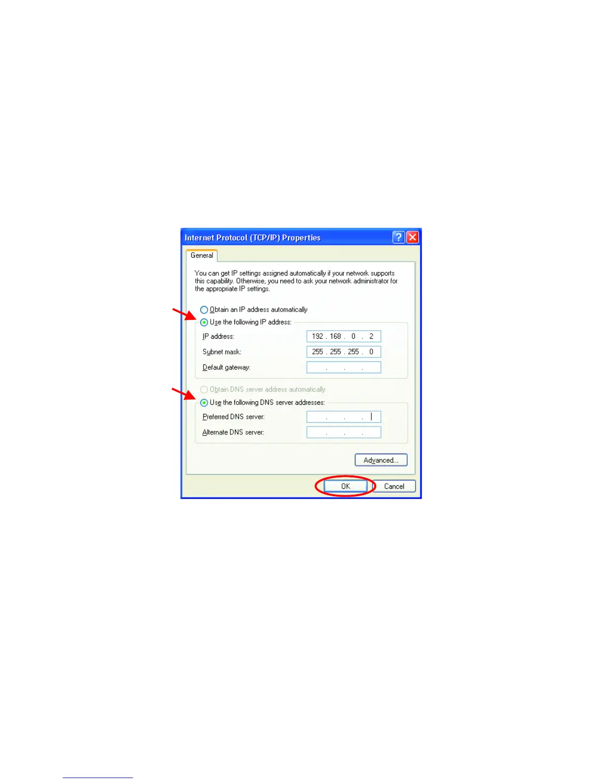 (Note: If you are entering a DNS server address, you must also enter the IP
