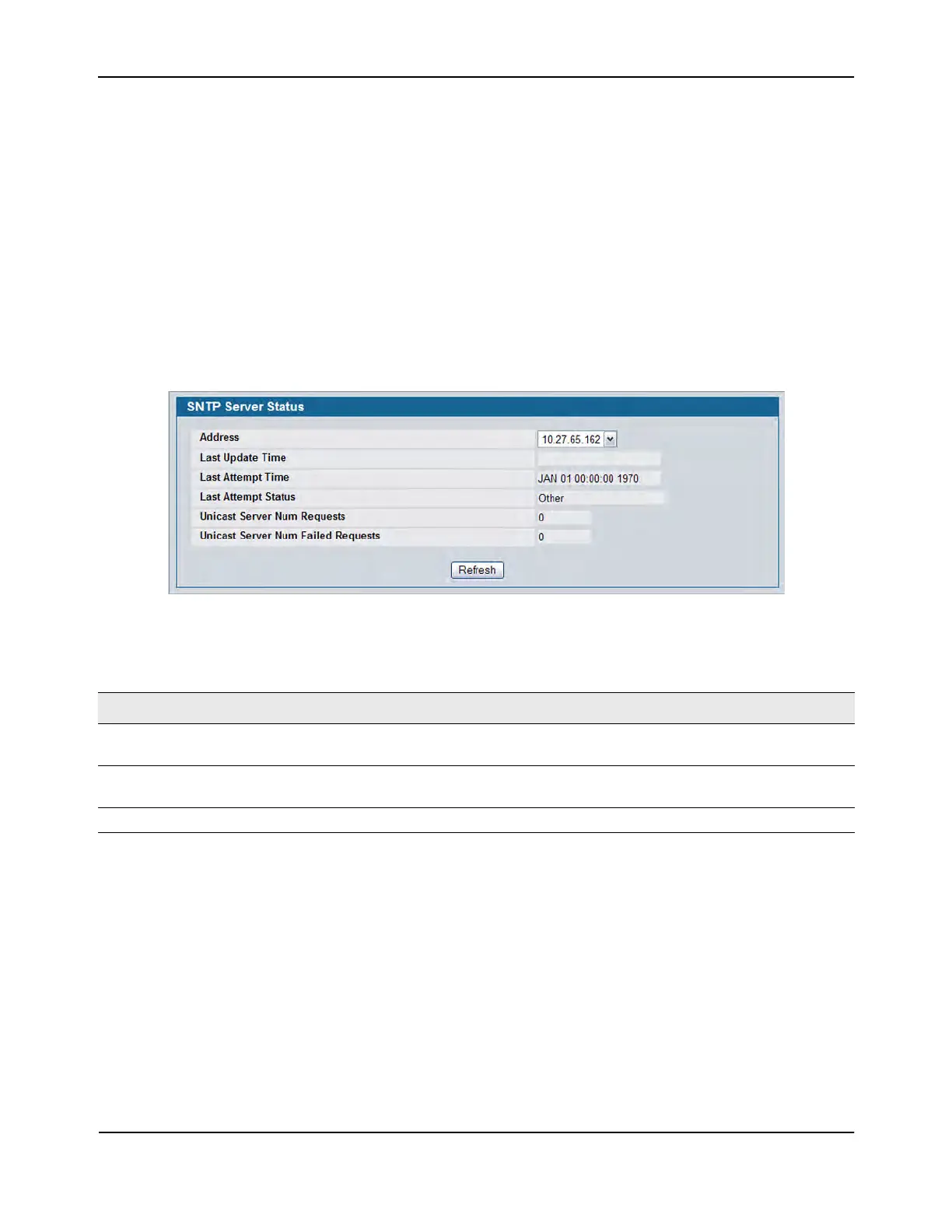 The SNTP Server Status page displays status information about the SNTP servers configured on your switch.