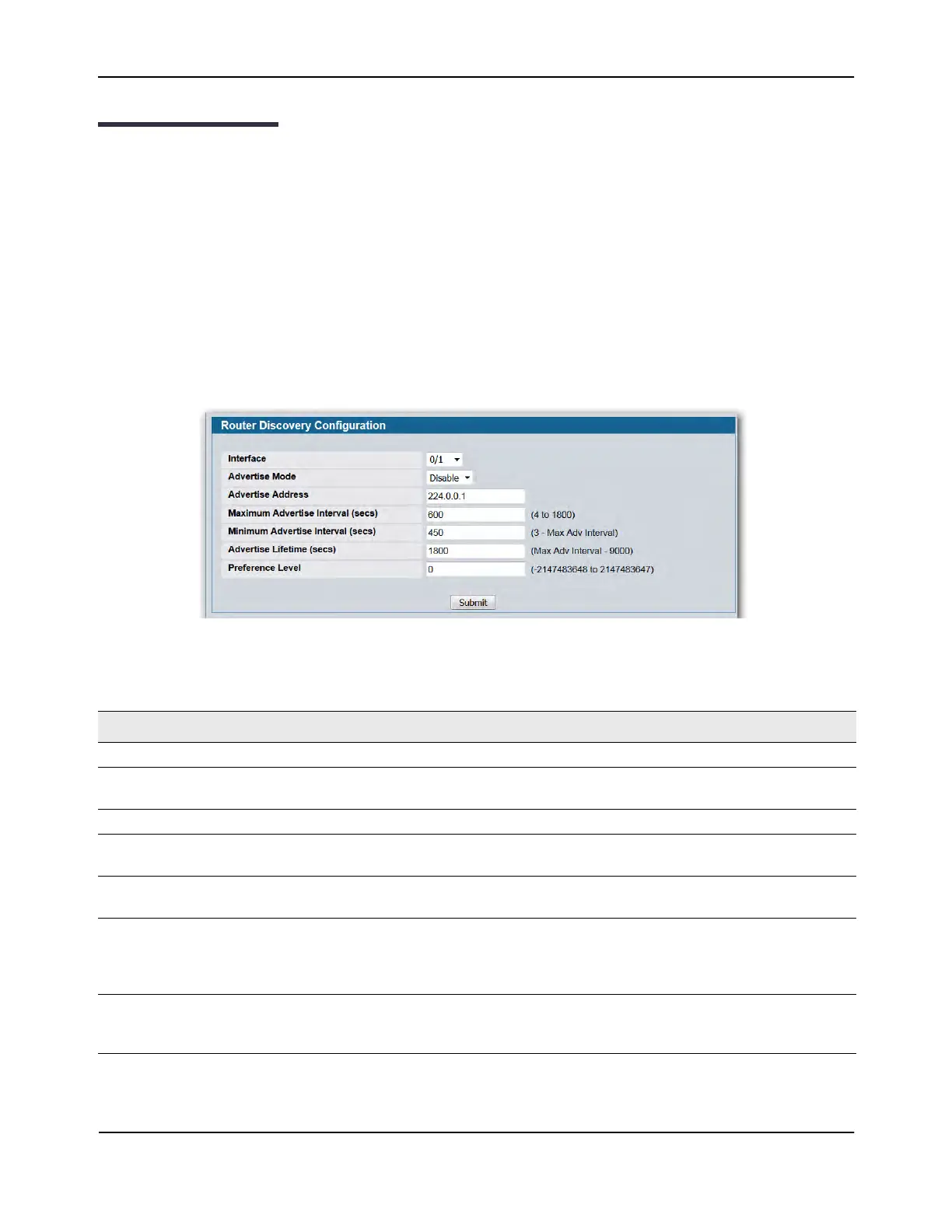 Table 182: Router Discovery Configuration Fields