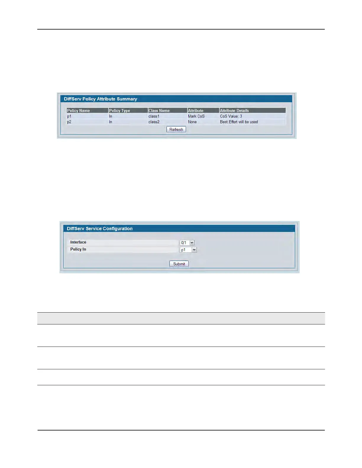for each policy. To display the page, click LAN > Monitoring > Differentiated Services > Policy Attribute