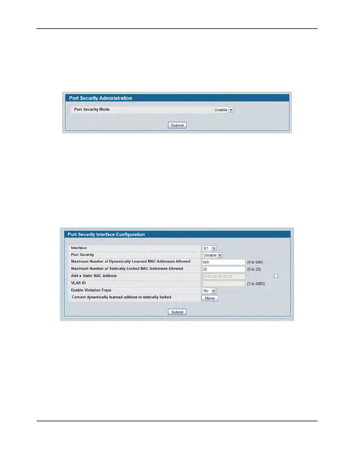 Select Enable or Disable from the Port Security Mode list and click Submit.