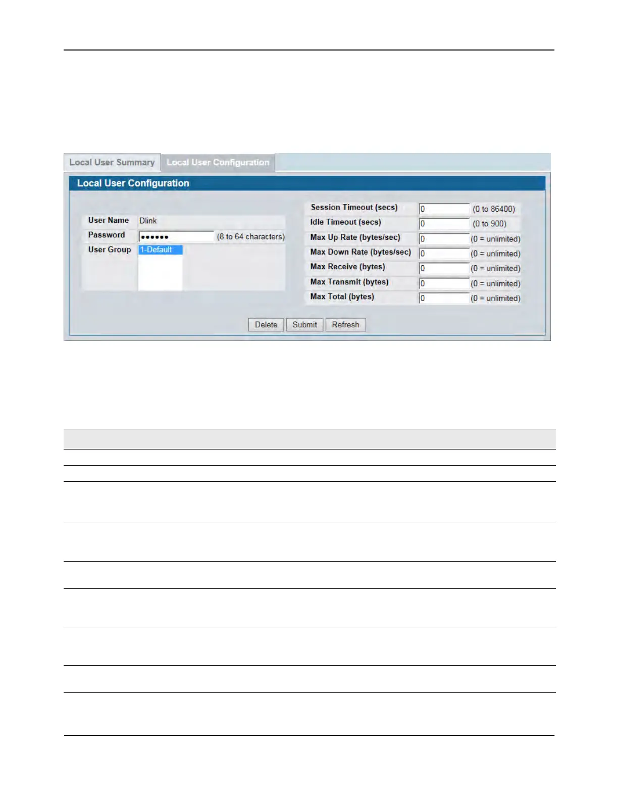 local database. When you add a user, you can set maximum data transmission rates to control bandwidth