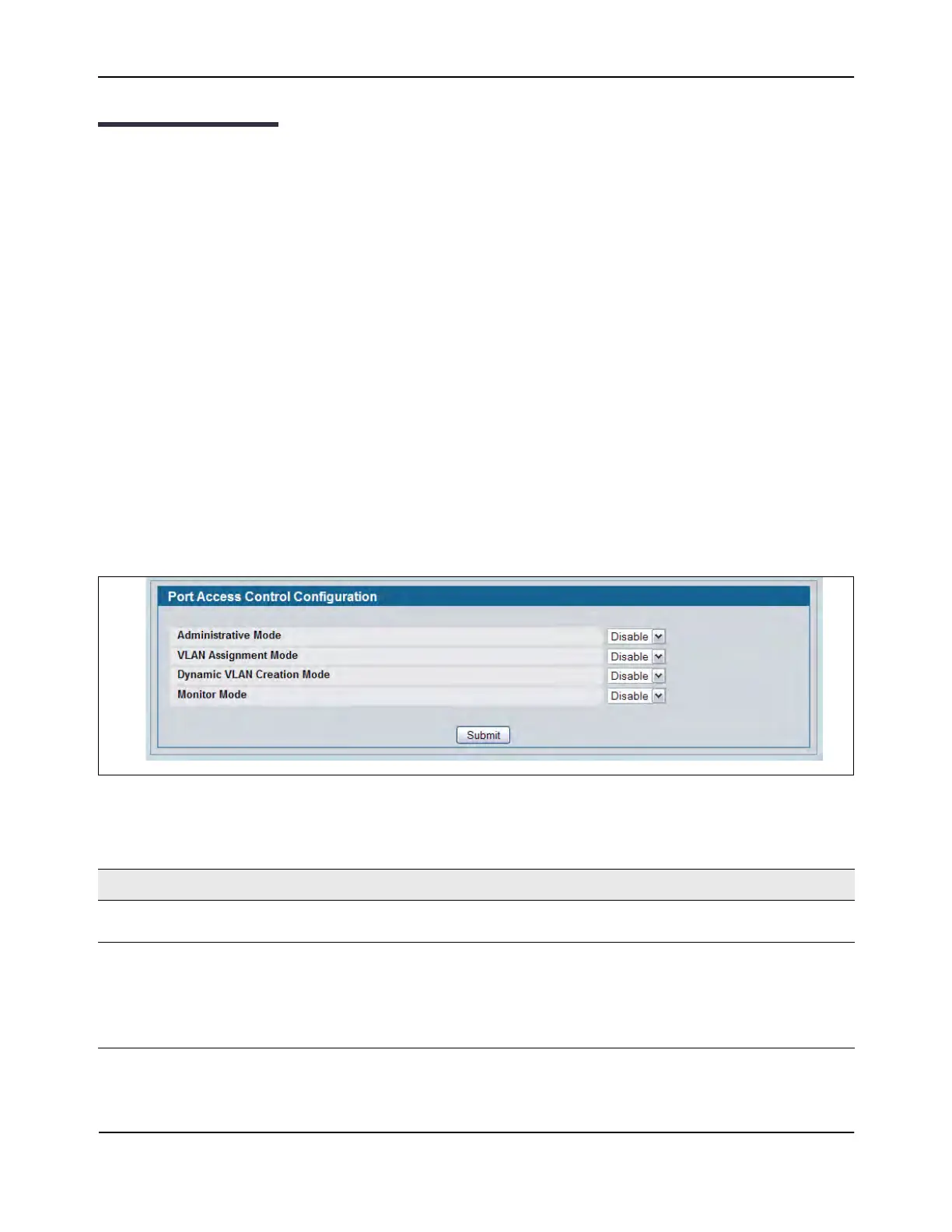 Administrative Mode Select Enable or Disable 802.1x mode on the switch. The default is Disable.