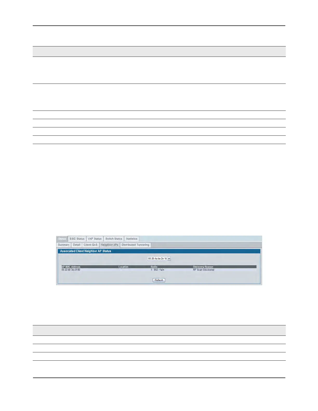Table 295 describes the information available on the Neighbor AP page for the associated client status.