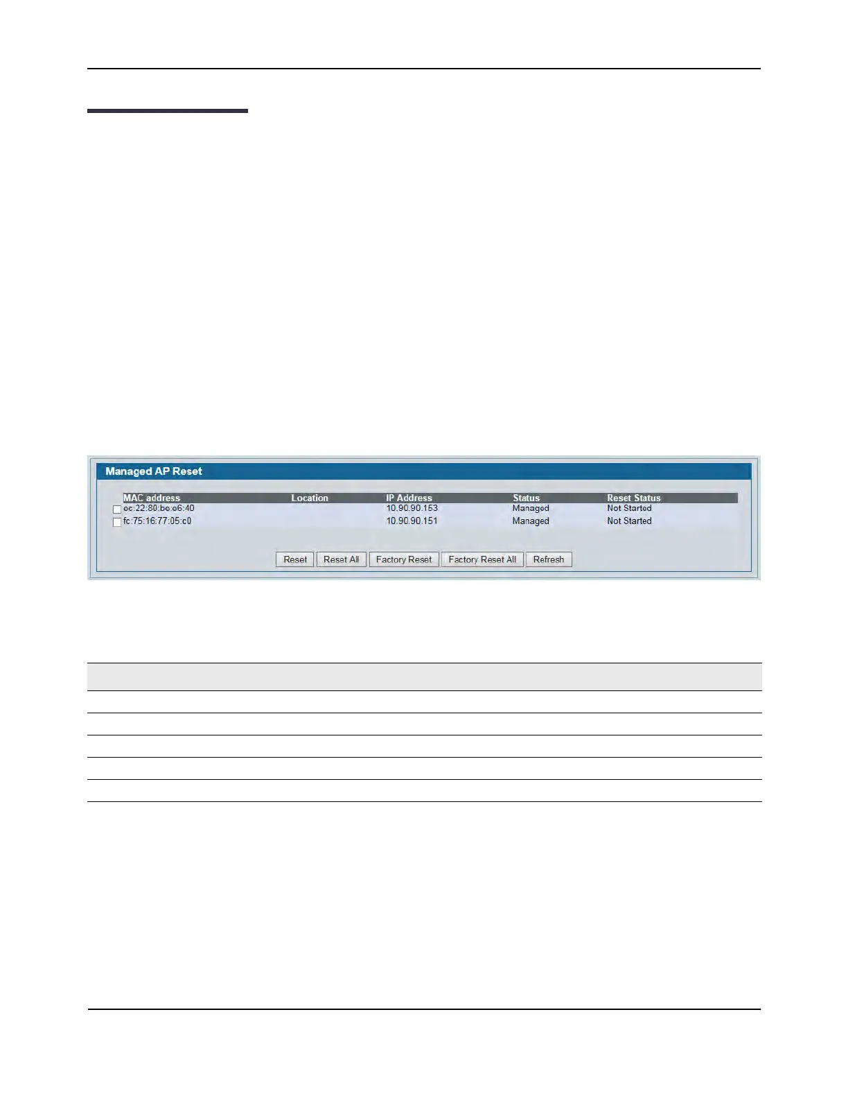 Reset All—Resets all managed APs listed on the page.
