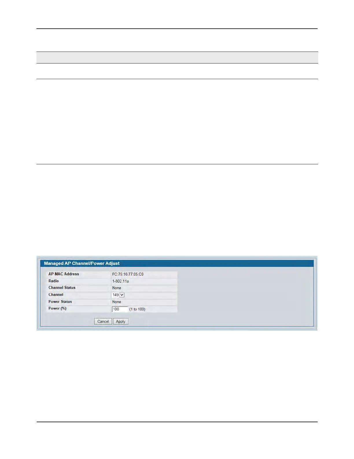 The fields in Table 345 on page 589 appear when you click the current channel or power setting for an AP on