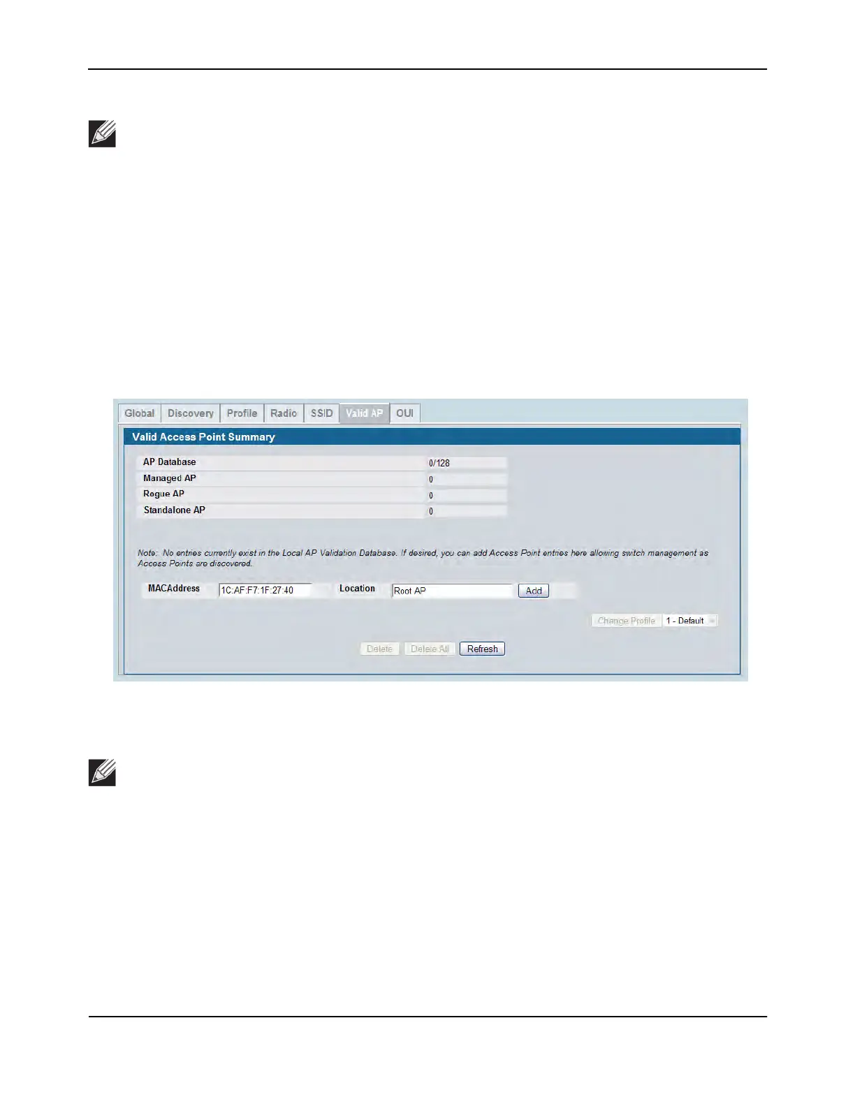 the Valid AP database and WDS Managed group. This example assumes the IP address of the AP is