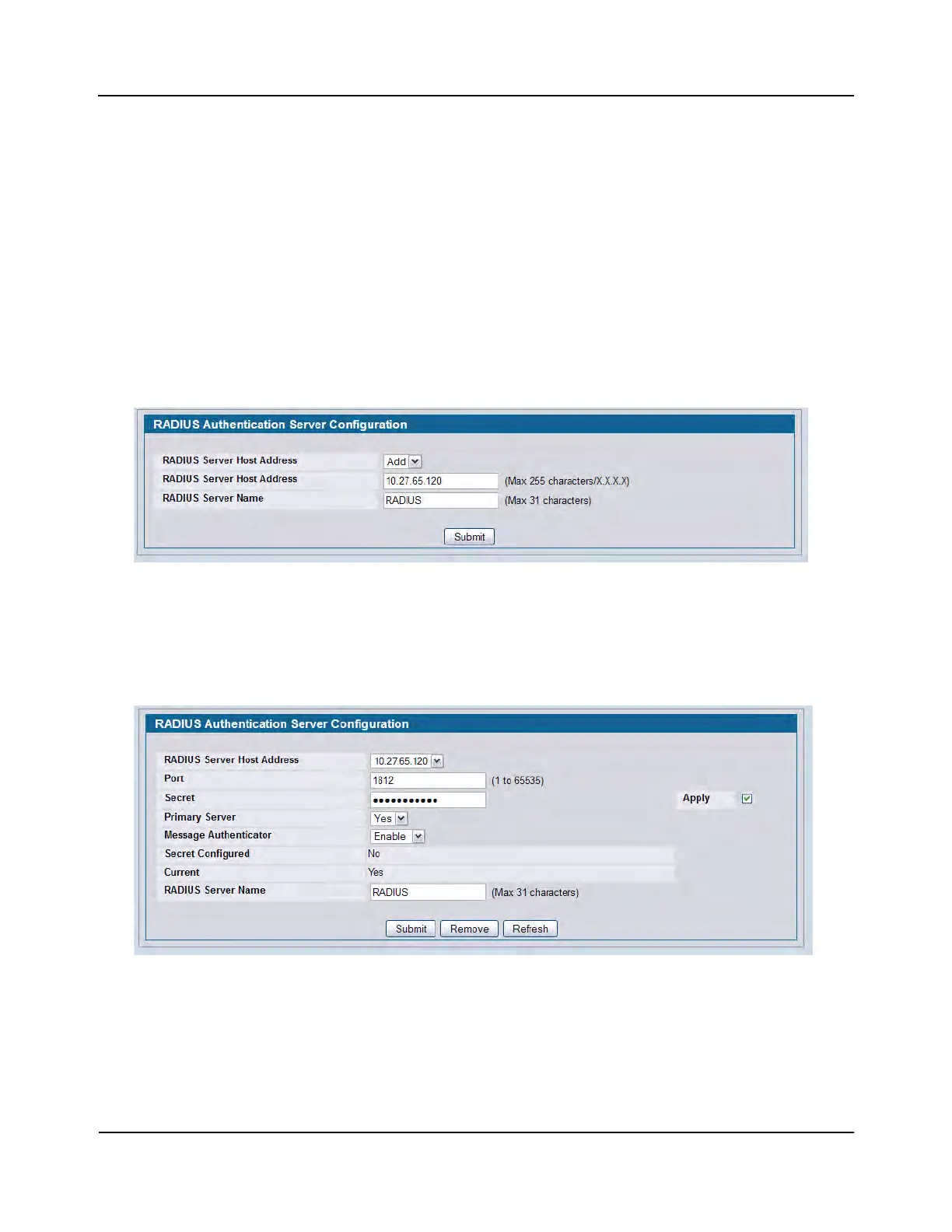 b. Configure the RADIUS server host address, for example 10.27.64.120.