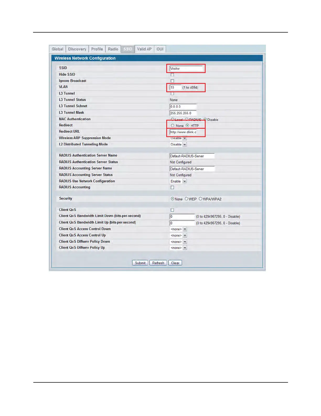 a. Click the SSID tab (or click WLAN > Administration > Basic Setup > SSID) to return to the Wireless