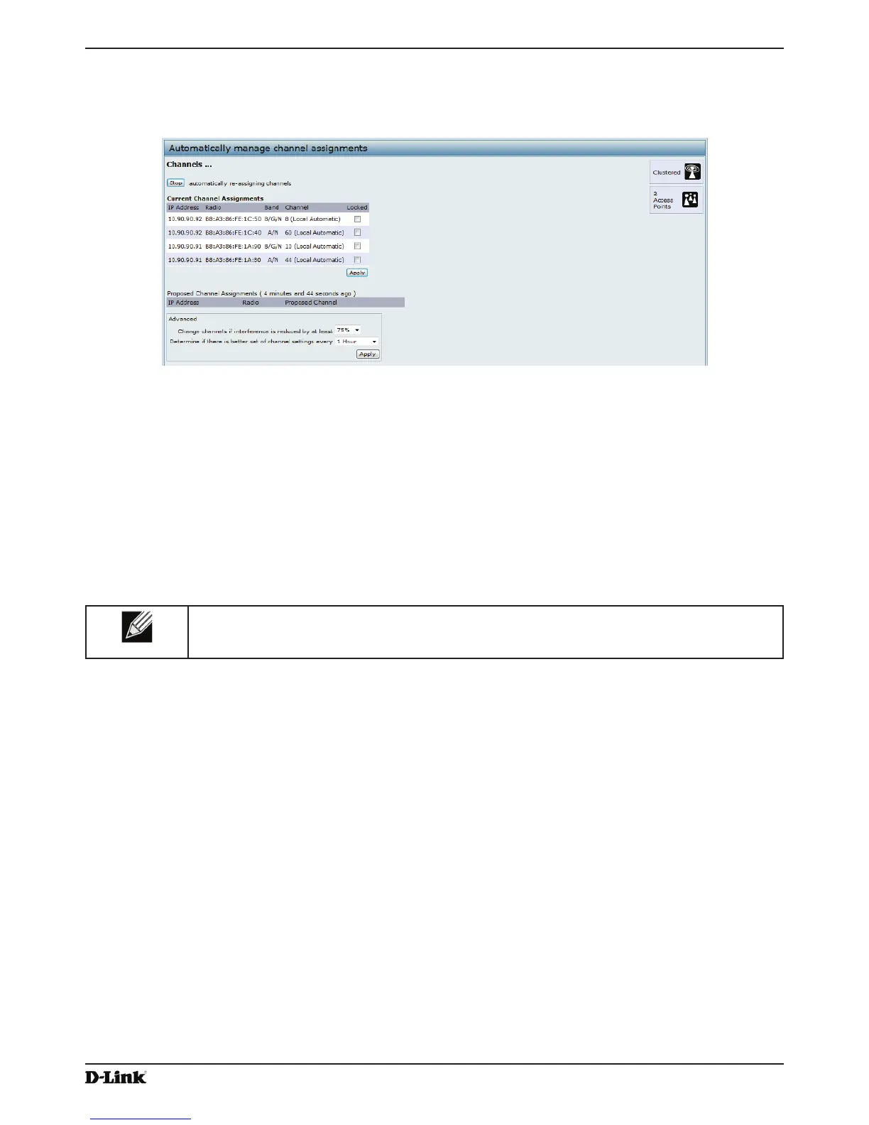 A table on the page displays the current channel assignments and the proposed channel assignments. The