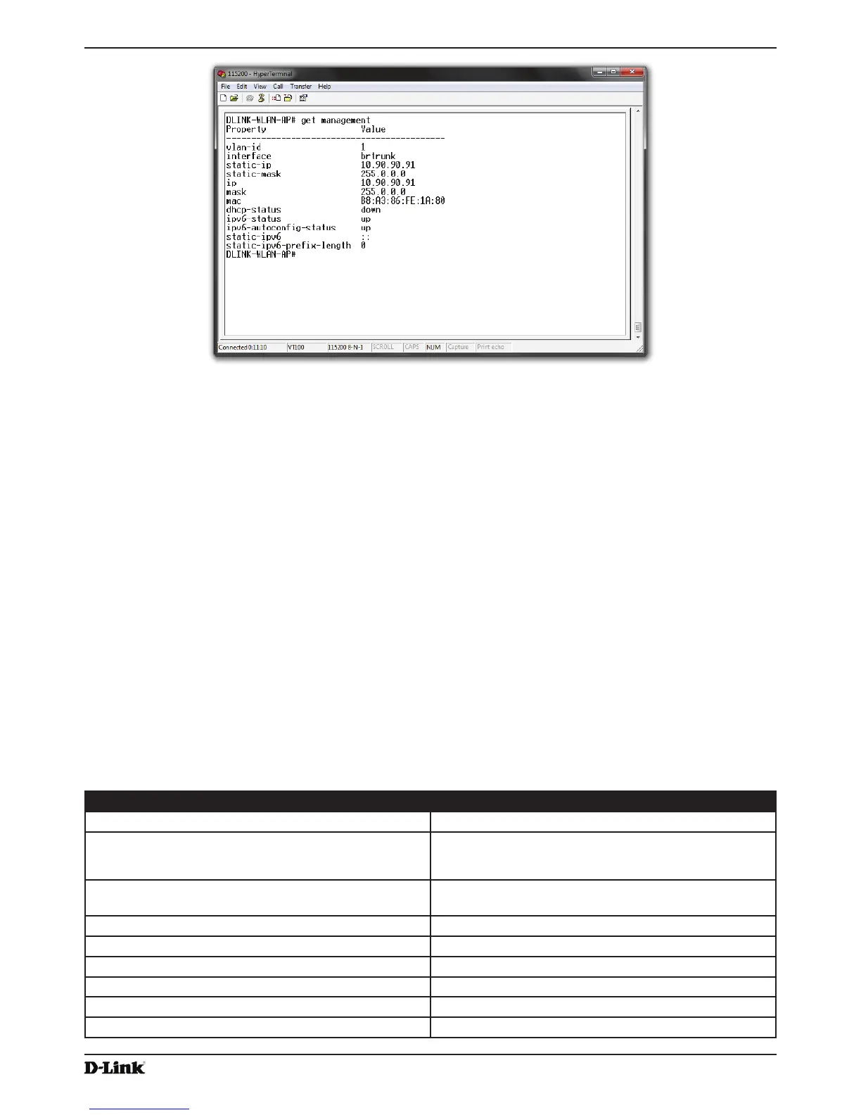 Use the commands shown in the following table to view and set values for the Ethernet (wired) interface. For more