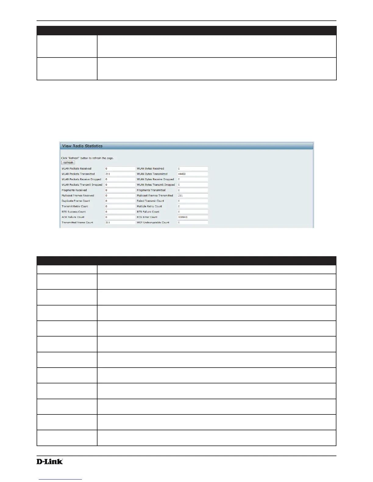 Radio Choose either radio 1 or radio 2 to view statistics for the selected radio
