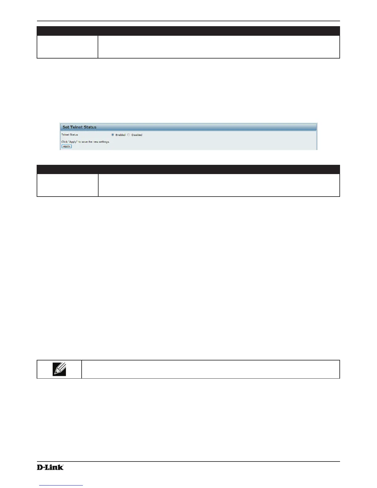 Telnet is a program that provides access to the DWL-x600AP CLI from a remote host. From the Telnet page, you can