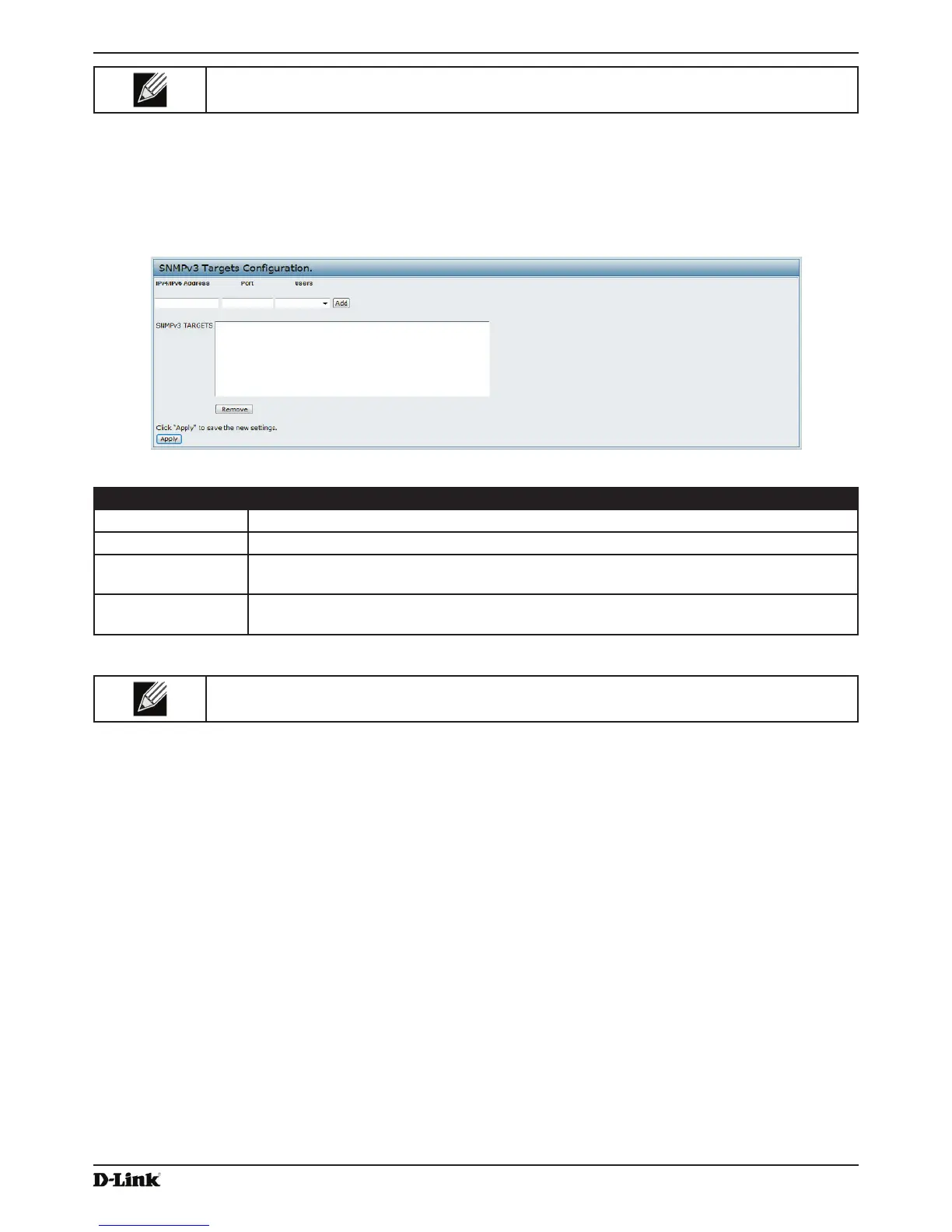 Note: After you conîšżgure the SNMPv3 Target settings, you must click Apply to apply the changes