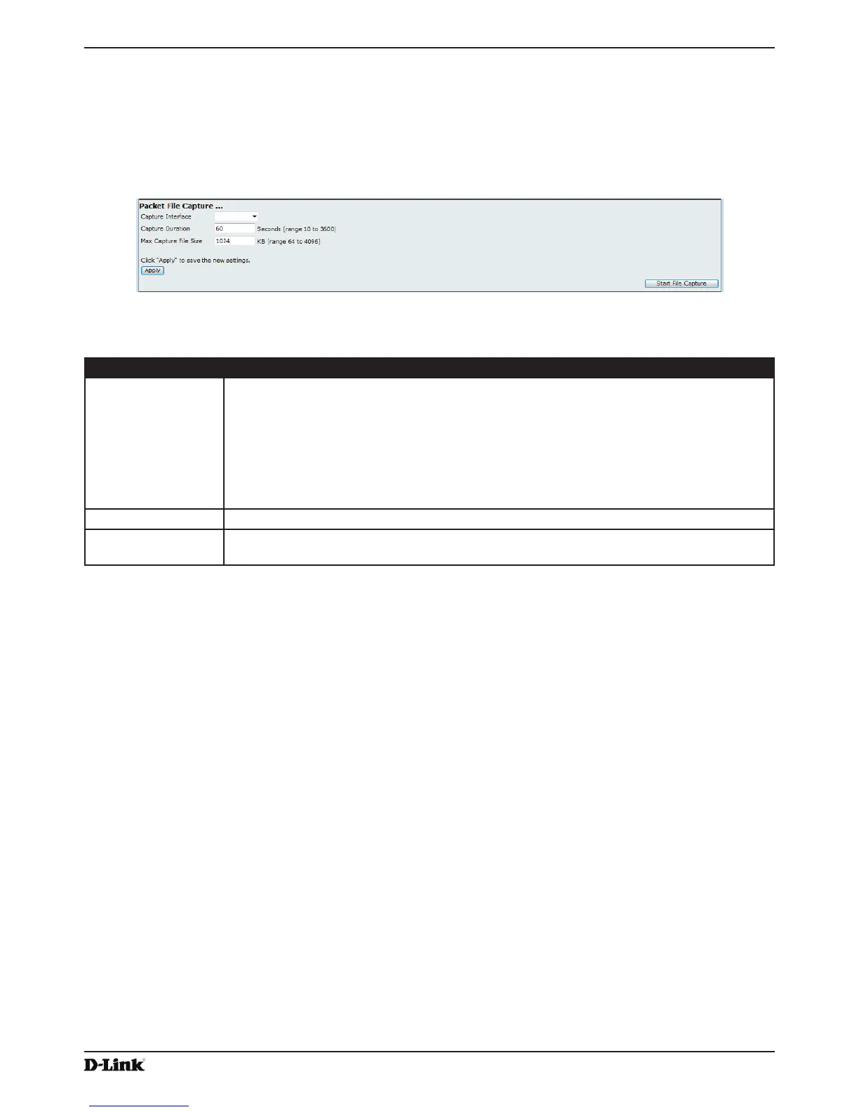 Capture Duration Specify the time duration in seconds for the capture (range 10 to 3600).
