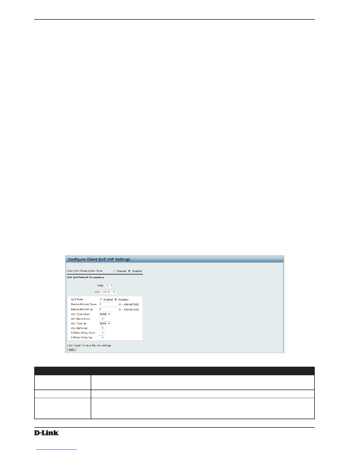 VAP Specify the VAP that will have the Client QoS settings that you conîšżgure.