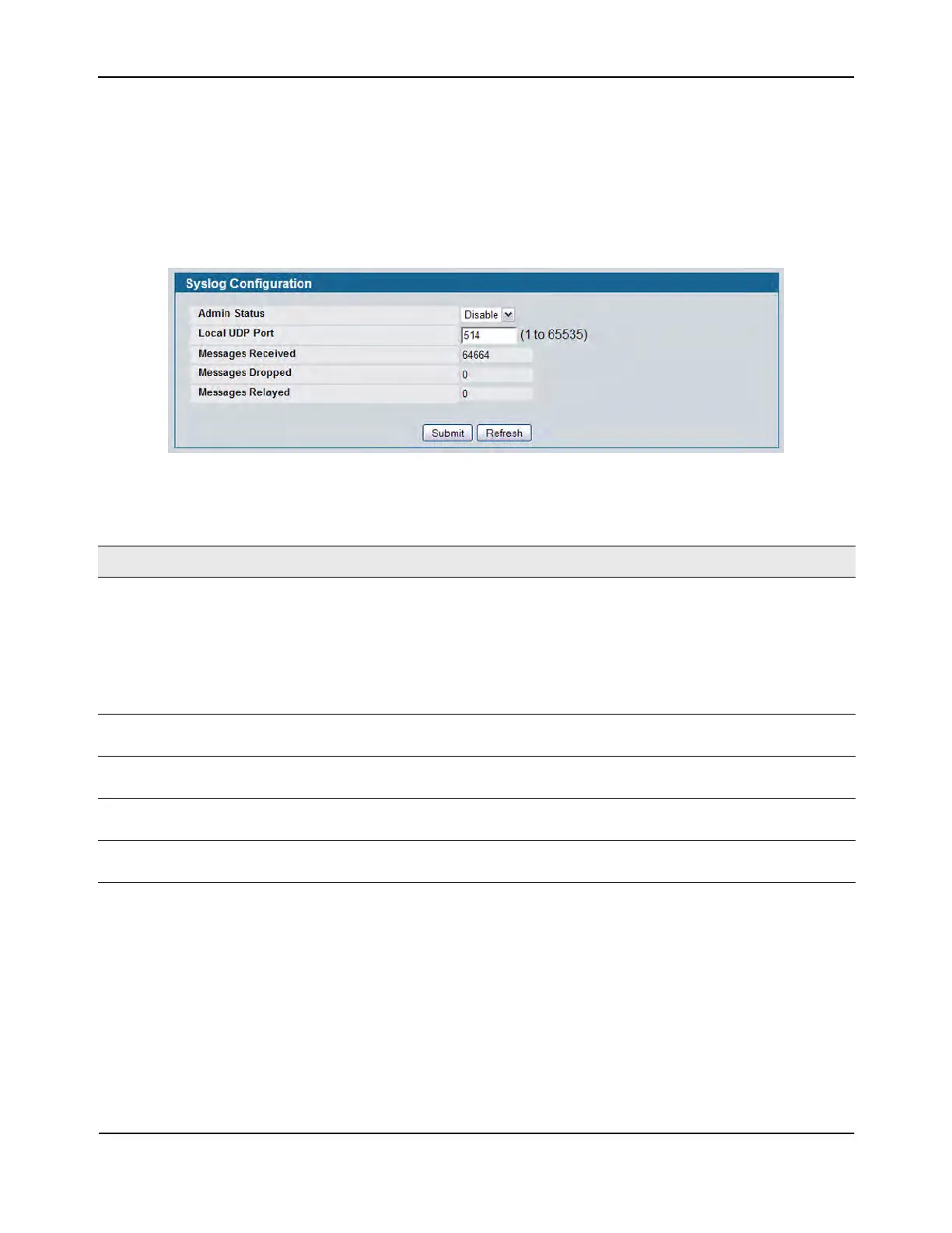 Use the Syslog Configuration page to allow the switch to send log messages to the remote logging hosts