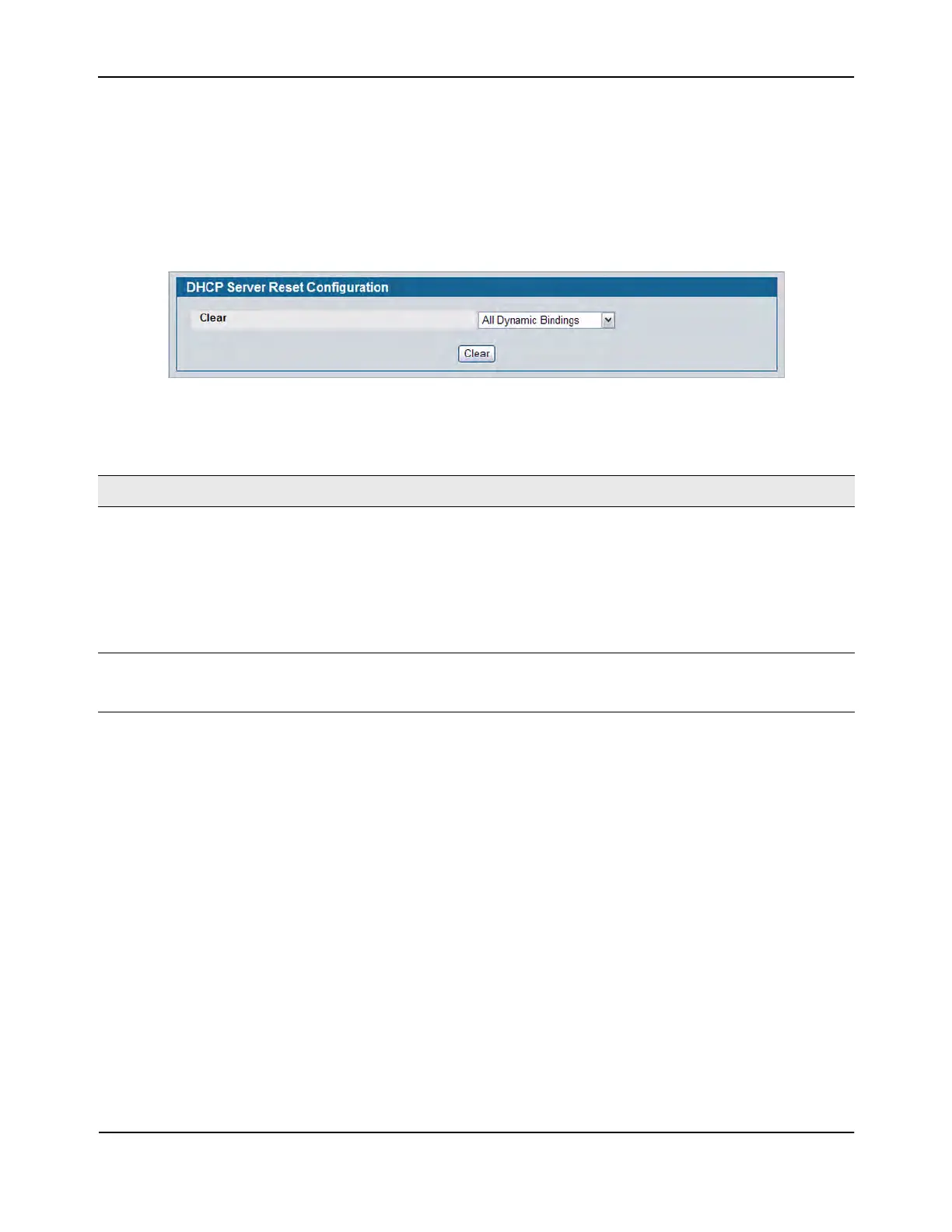 Clear IP Address If you select Specific Dynamic Bindings or Specific Address Conflicts from the