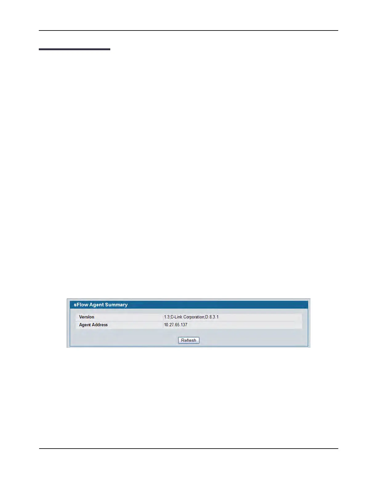 To access the sFlow Agent Summary page, click LAN > Monitoring > sFlow > Agent Summary in the navigation