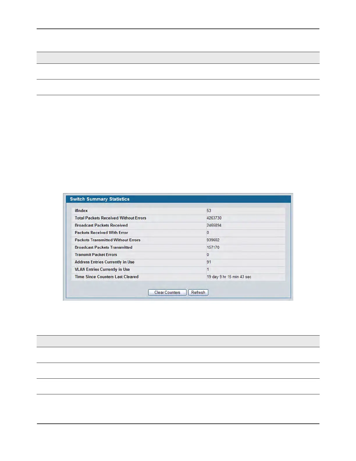 Click Clear Counters to clear all the statistics counters, resetting all switch summary and detailed statistics