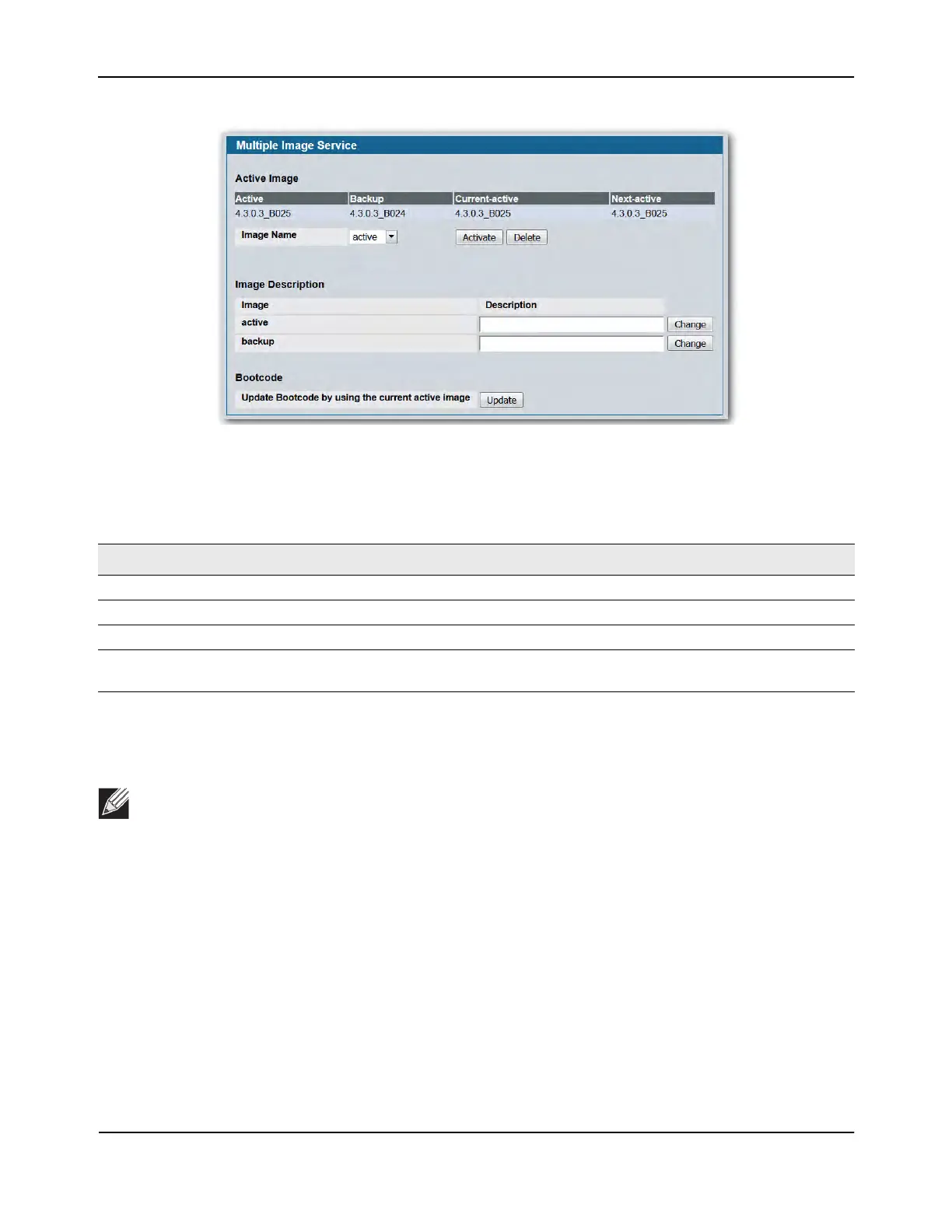 Image Name Select Active or Backup from the menu to activate on the next reload or to be deleted.