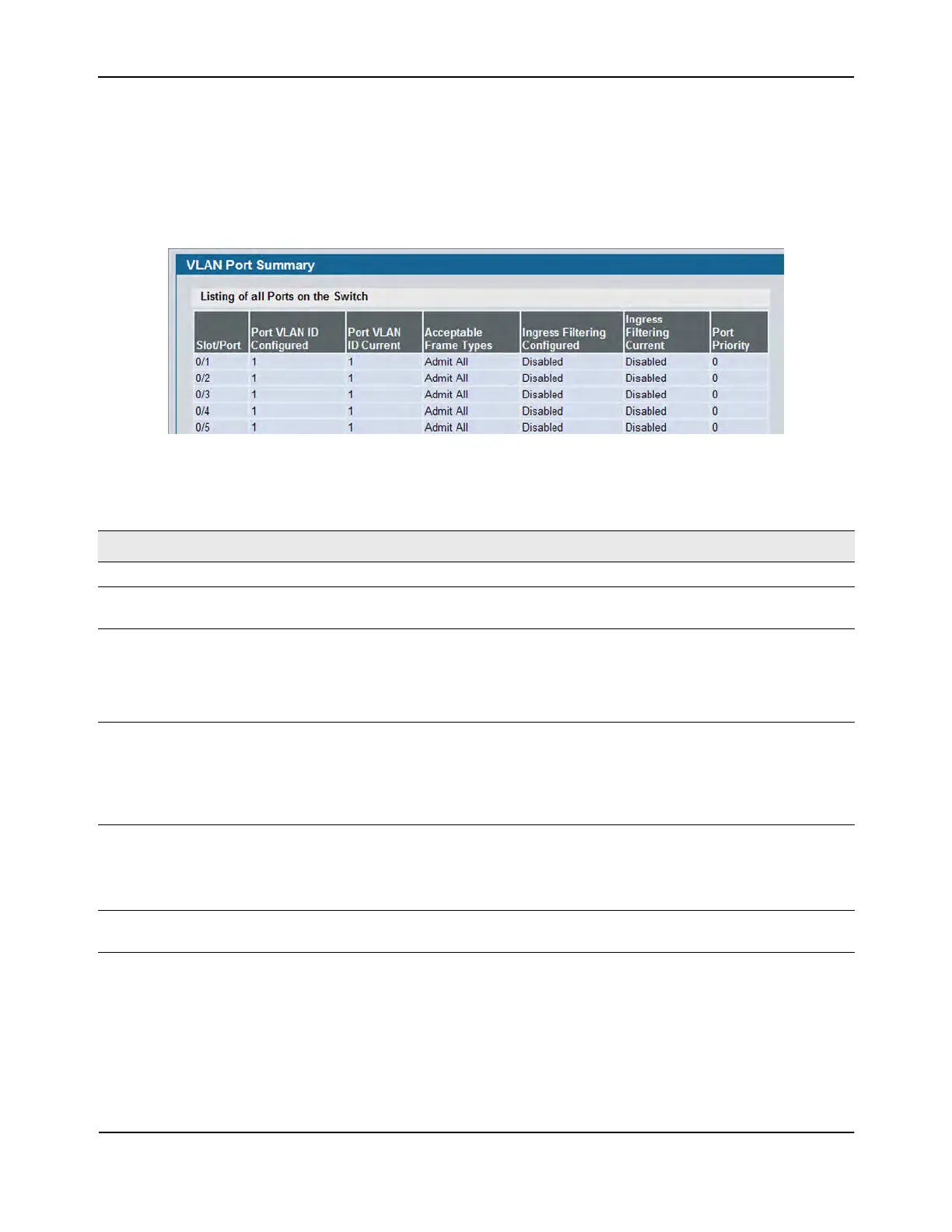 Use the VLAN Port Summary page to view VLAN configuration information for all the ports on the system.