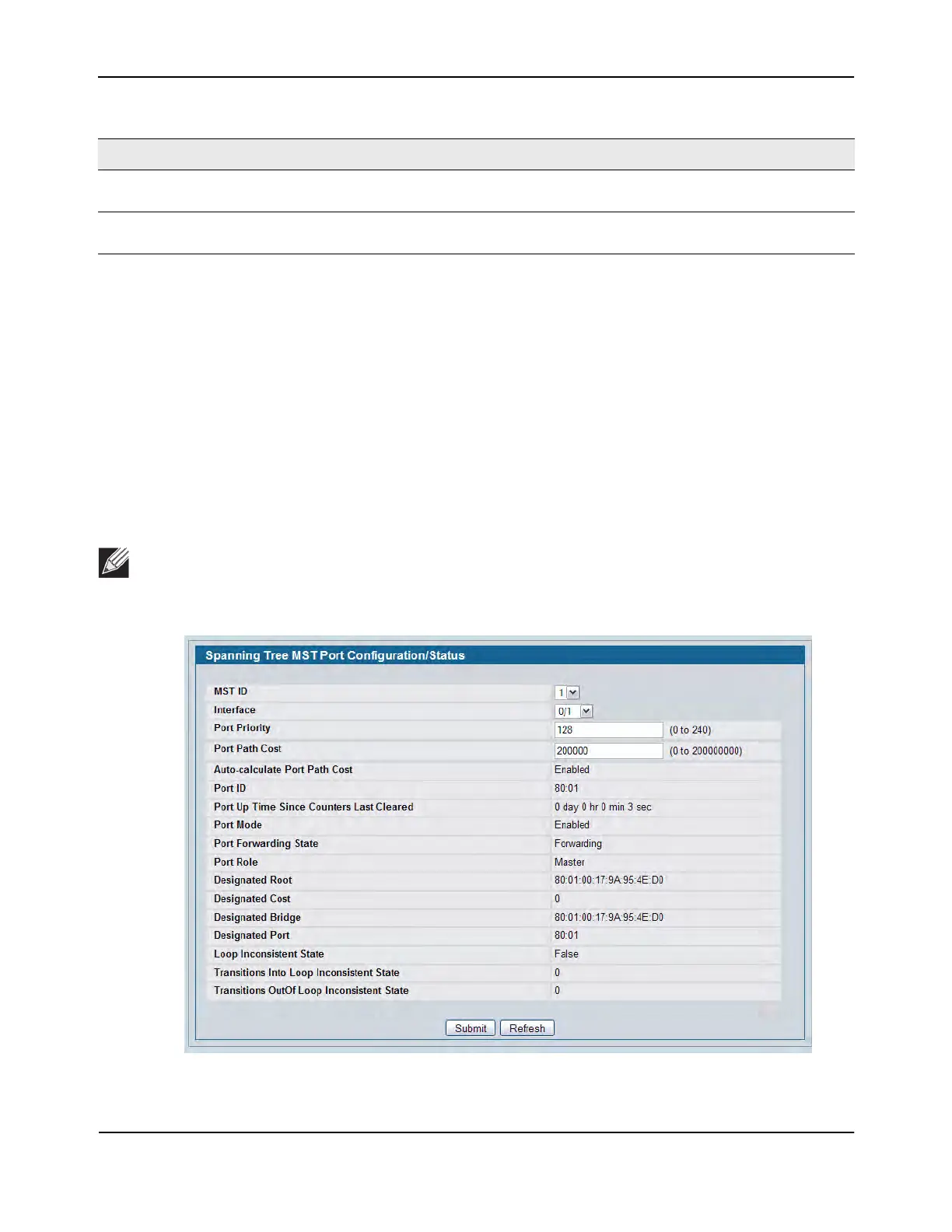 Note: If no MST instances have been configured on the switch, the page displays a “No MSTs