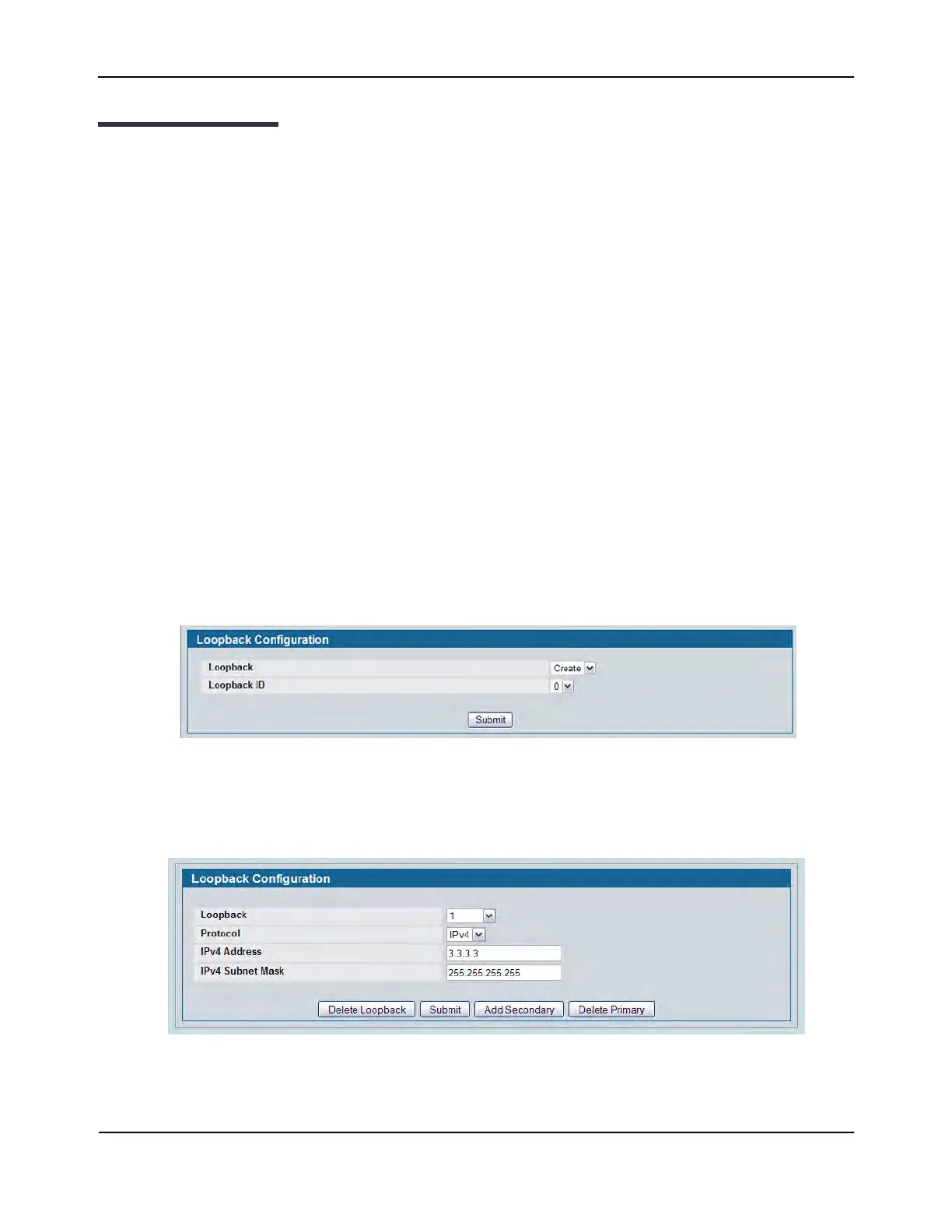 To display the page, click LAN > L3 Features > Loopbacks > Configuration in the navigation tree. If no loopback