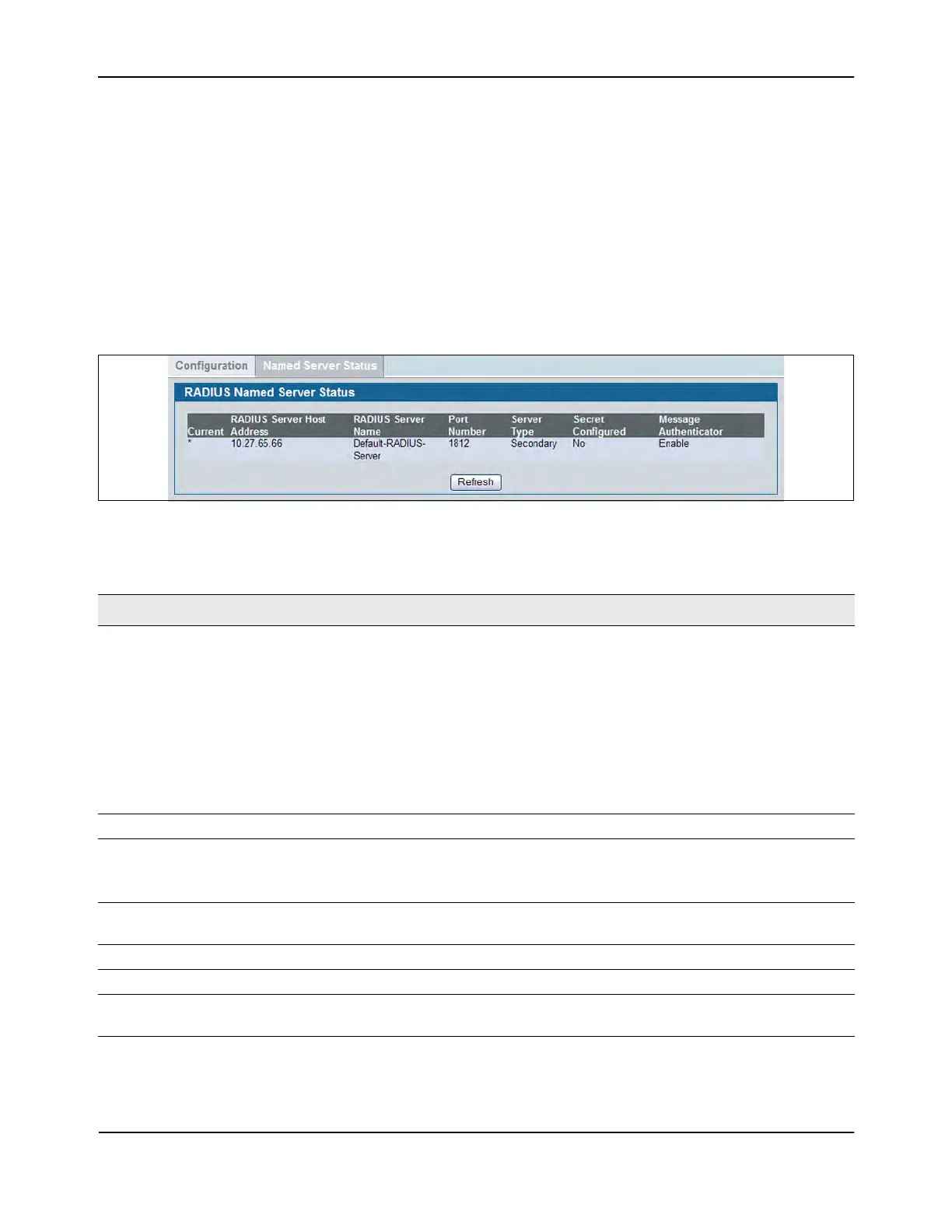 The RADIUS Named Server Status page shows summary information about the RADIUS servers configured on