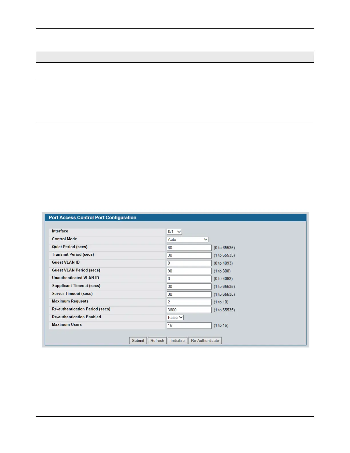 Use the Port Access Control Port Configuration page to enable and configure port access control on one or