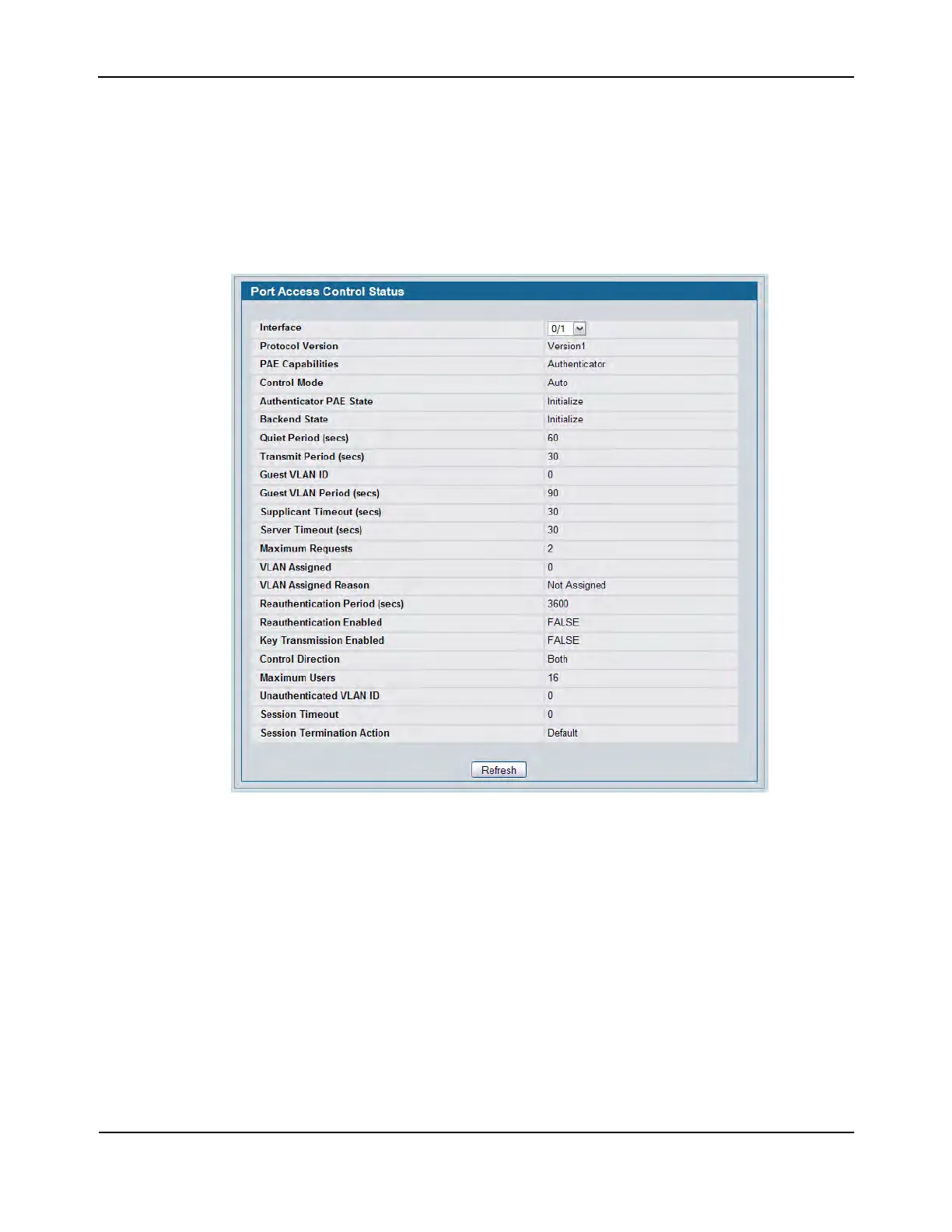 Use the Port Access Control Port Status page to view information about the port access control settings on a