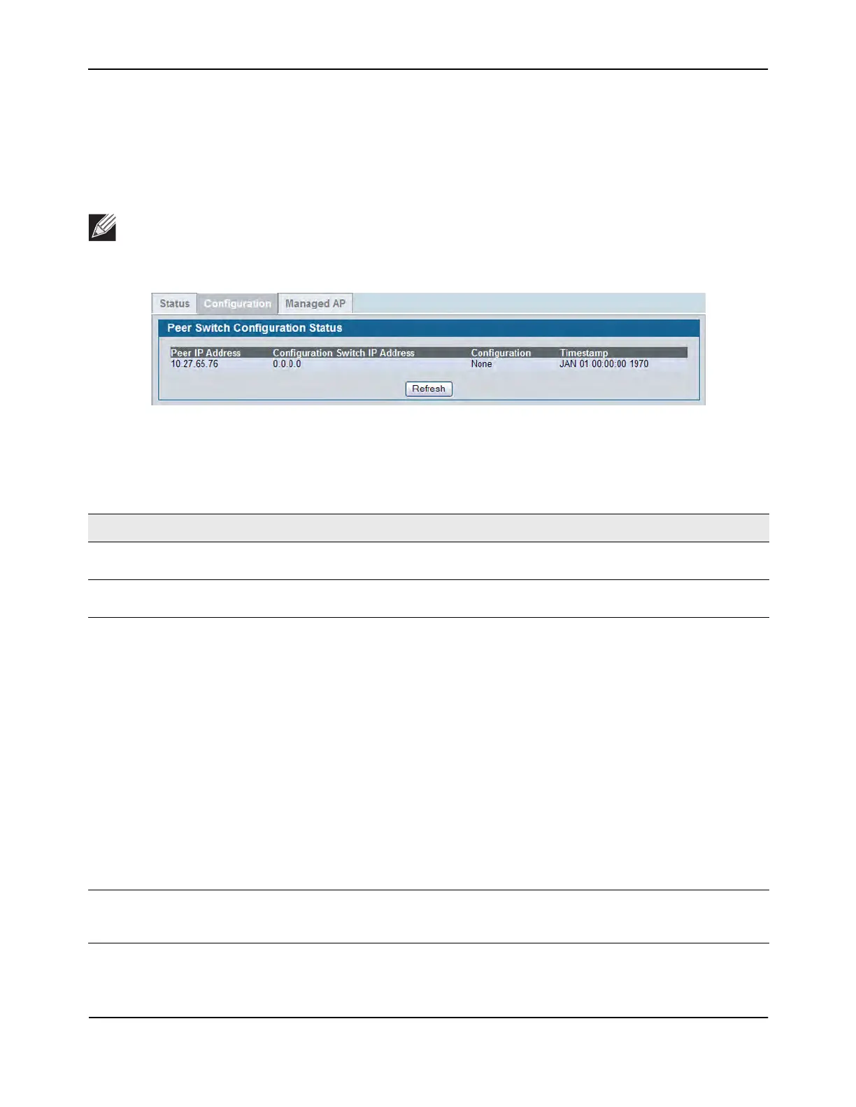 Switch Configuration Status page displays information about the configuration sent by a peer switch in the