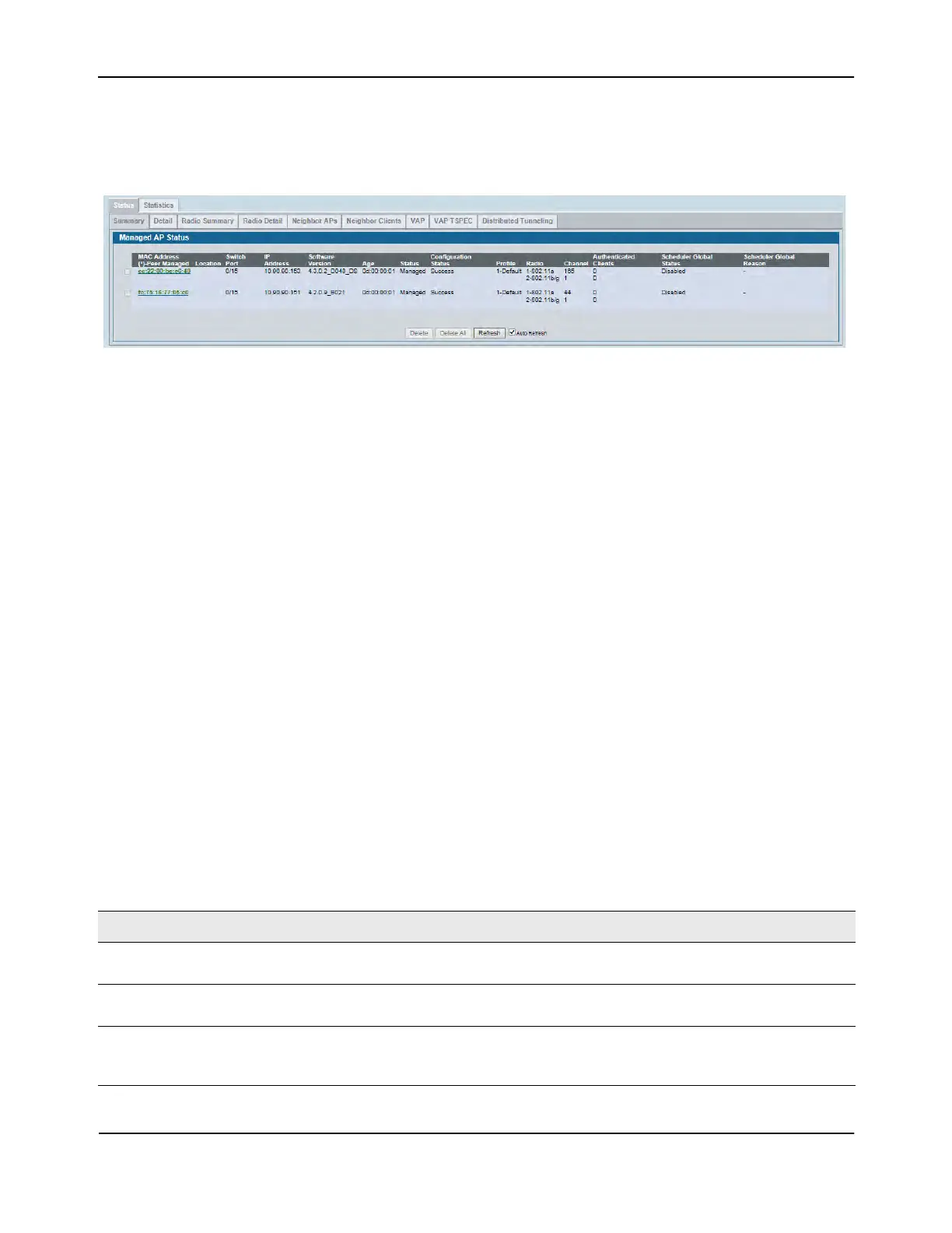The following table provides summary information about the APs that the switch manages. If the switch is the