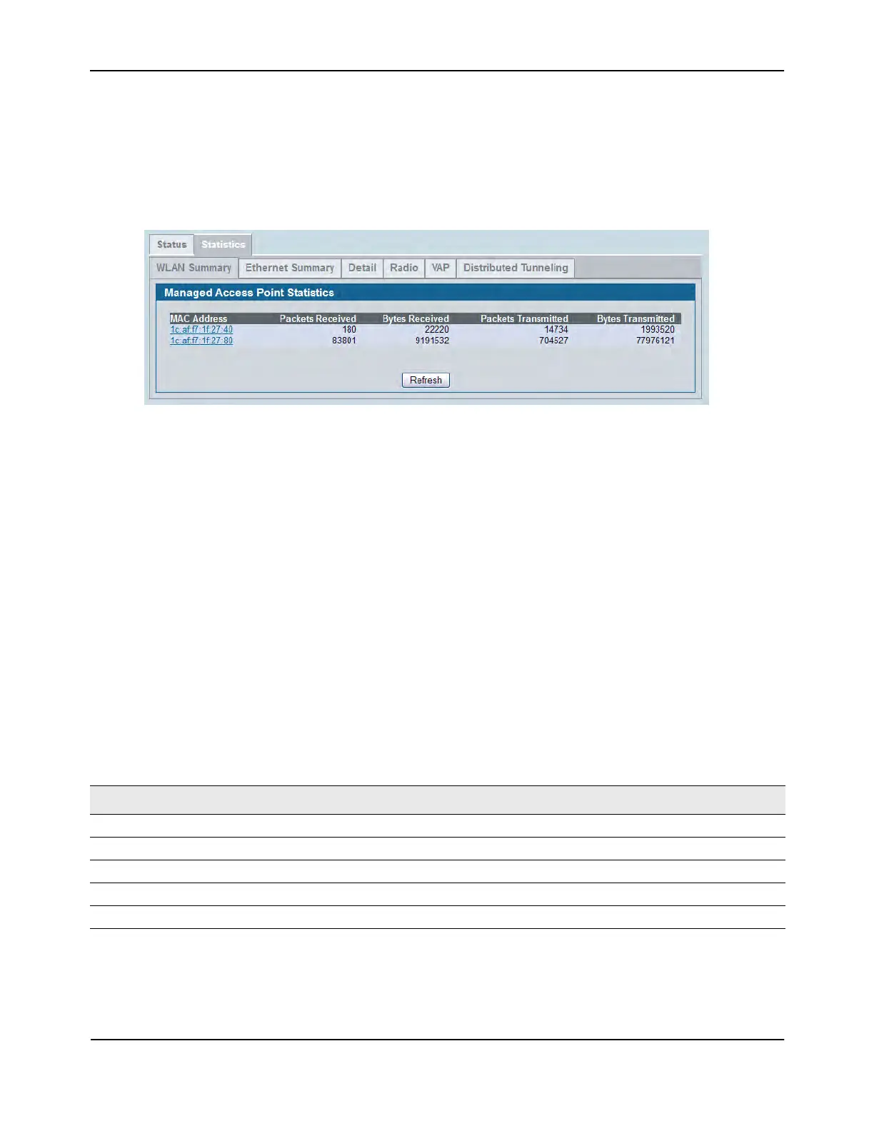 MAC Address The Ethernet address of the DWS-4000 Series switch-managed AP.