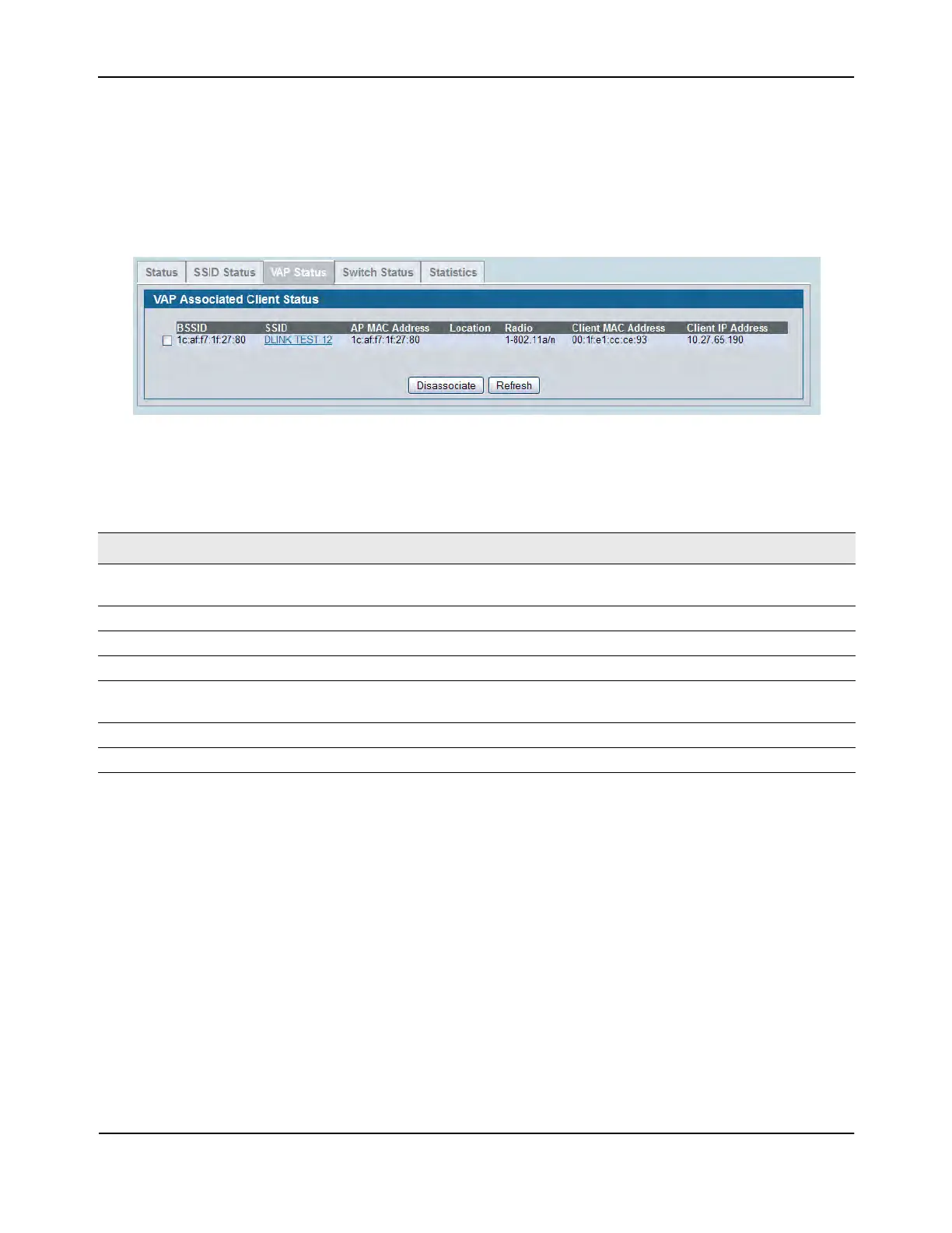 page which shows information about the VAPs on the managed AP that have associated wireless clients. To